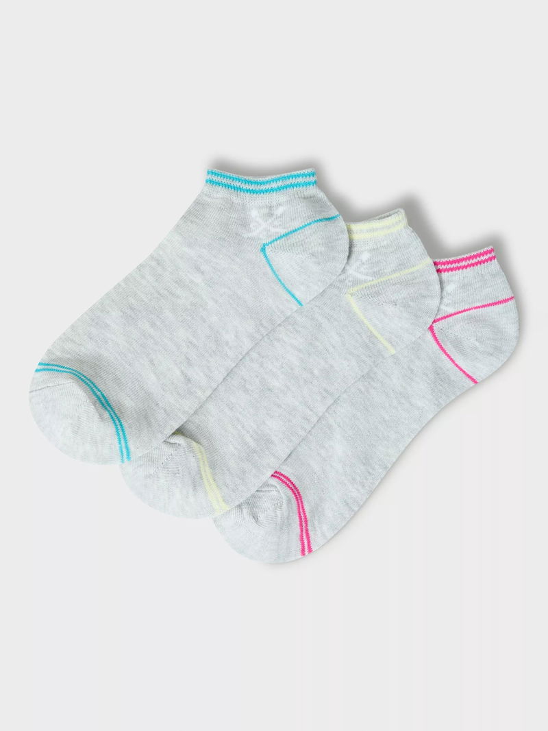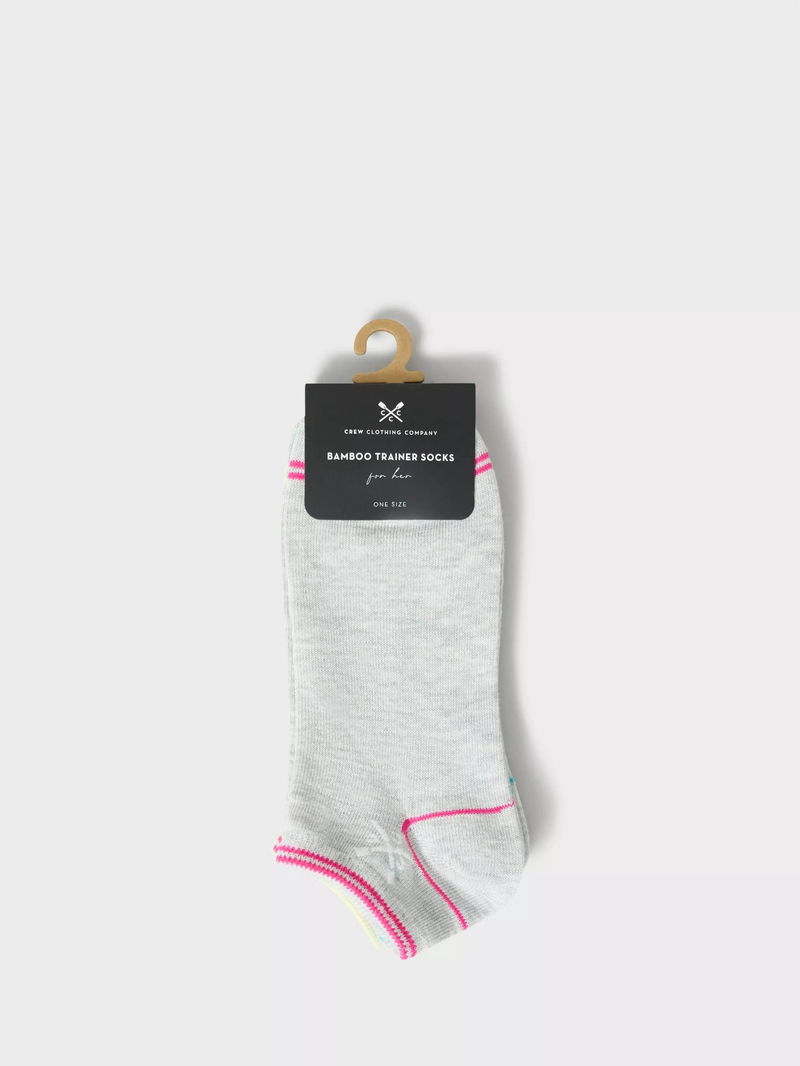 A three-pair pack of trainer socks with striped edges. Keeping feet fresh, they're made from bamboo: a fabric prized for its breathable and super-soft qualities. Ready for work, weekends and everything in between.