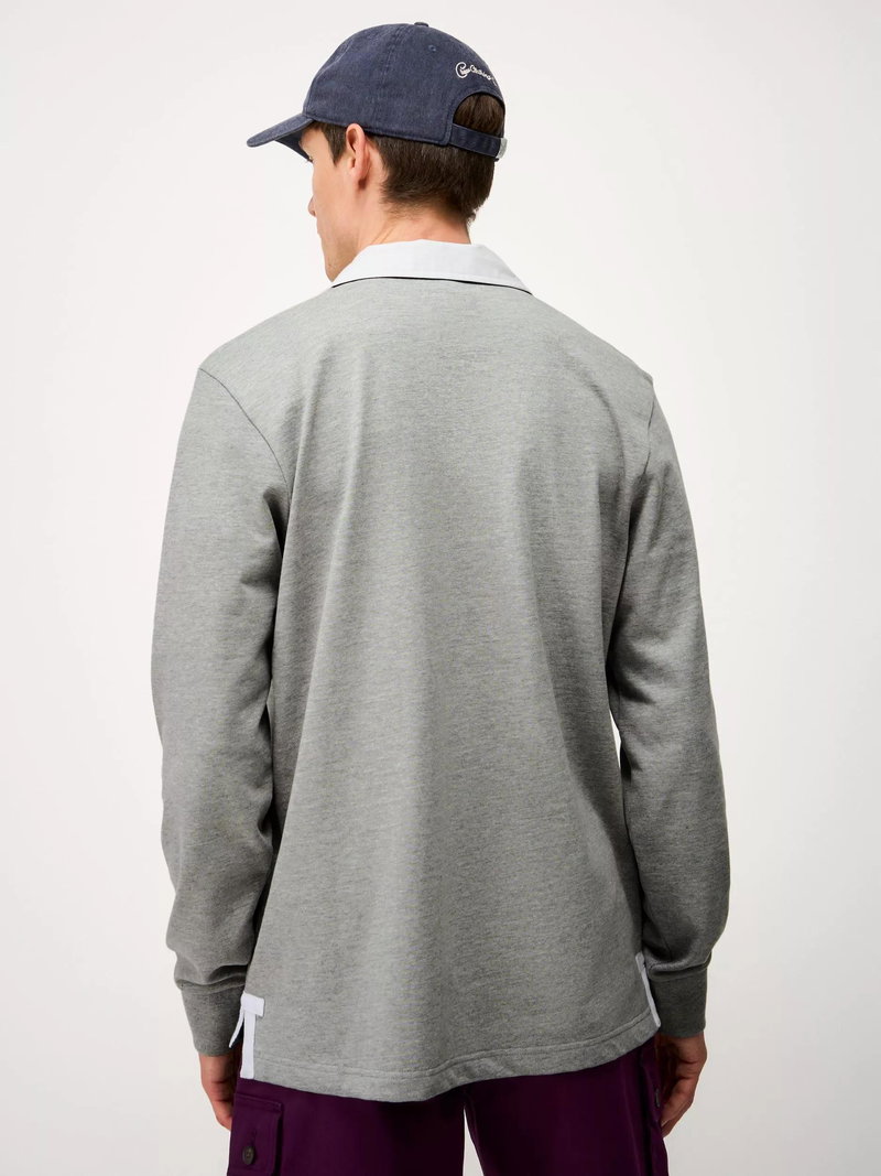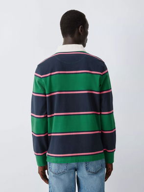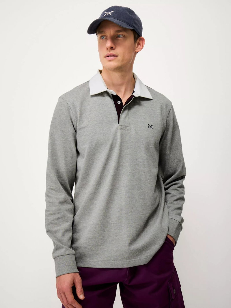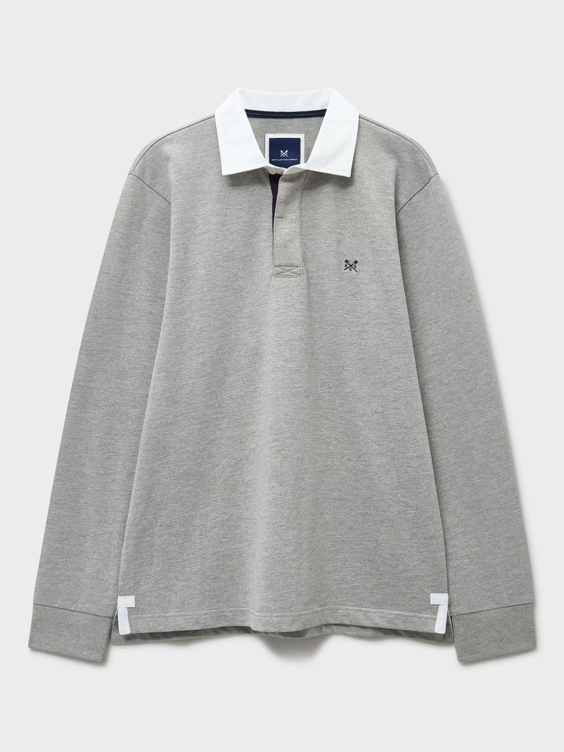 A cotton rugby shirt featuring a striped placket, branded buttons and hidden Crew branding embroidered under the collar. The brand has finished this sporty piece with its crossed oars on the chest and flag embroidery on the cuff, too. A varsity-inspired touch that makes this a winning design. Pair with chinos for easy everyday styling.