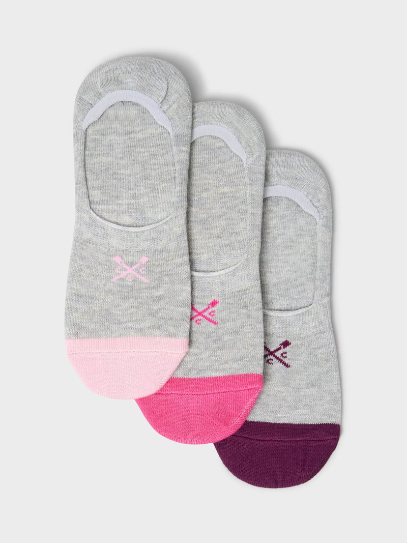 A three-pack of bamboo secret socks in stripes. Designed to be hidden, they have inner heel grips to help them stay put.