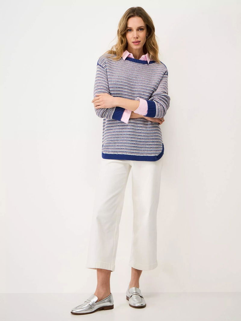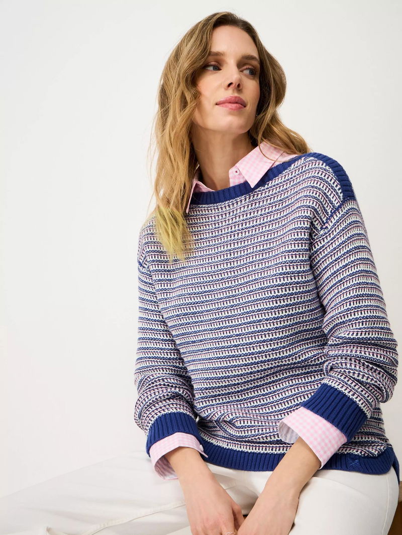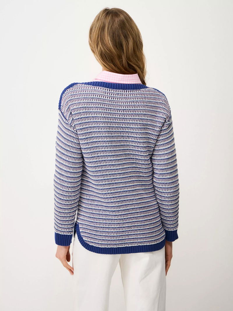 Textured Stitch Stripe Jumper, Dark Blue/Multi