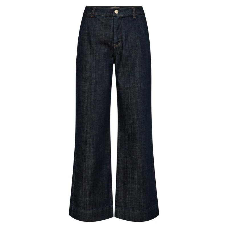 MOS Mosh Dara Nippon Jeans blend a tailored expression with a classic dark wash. The high waist and wide legs create an elegant yet relaxed silhouette for everyday wear or dressed-up occasions.