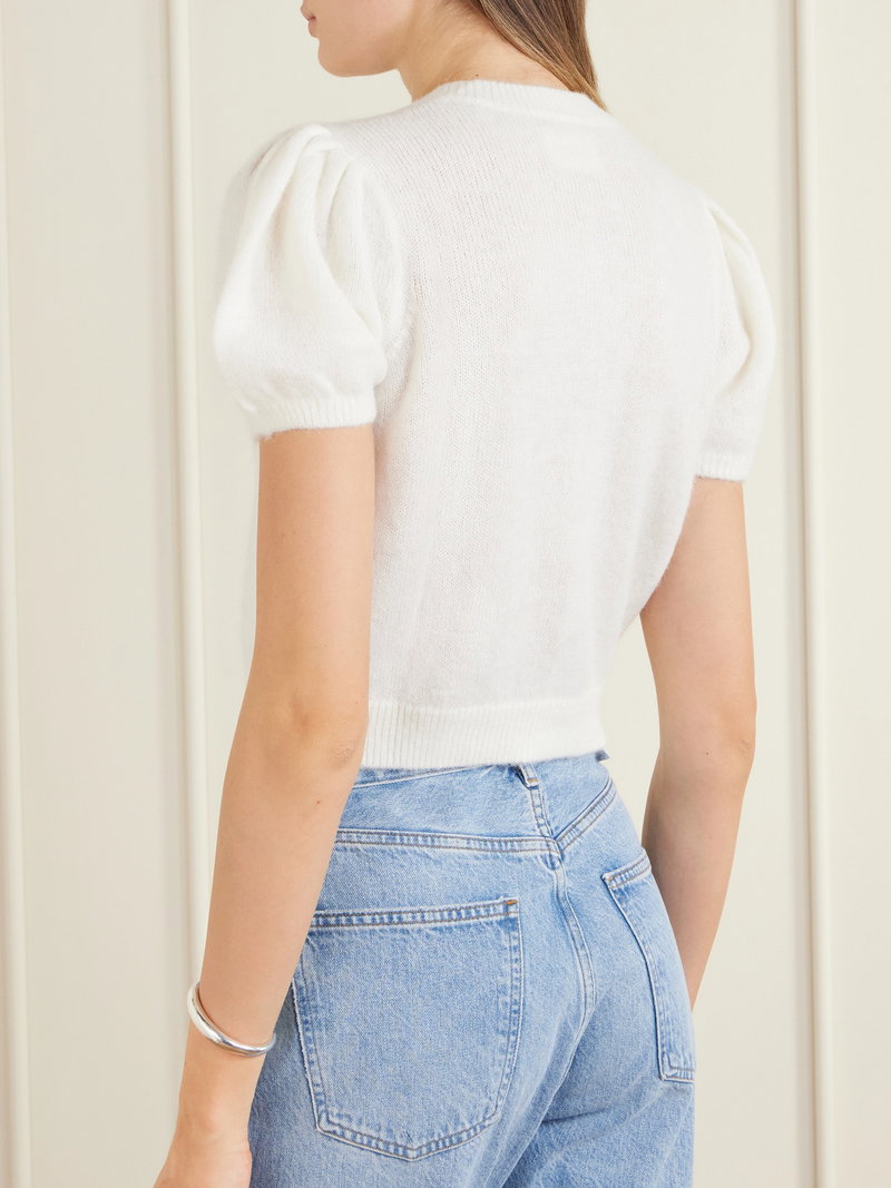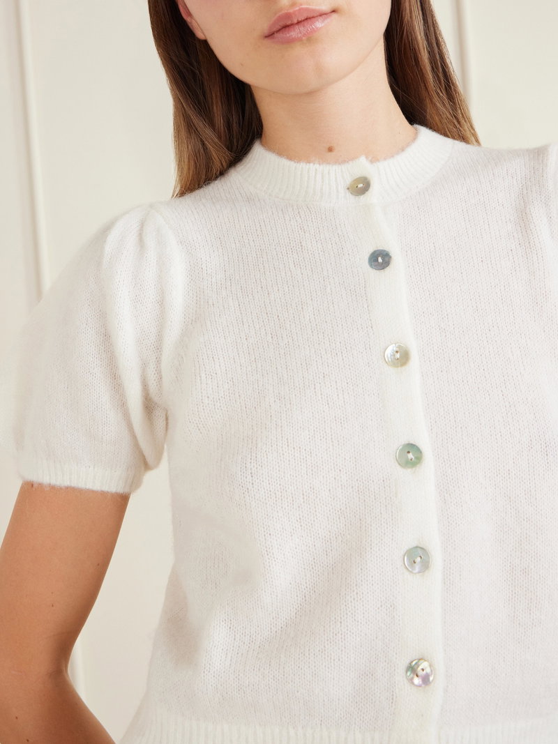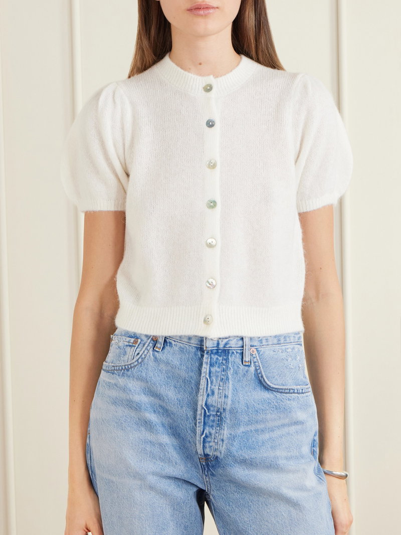 DÔEN's 'Anisa' cardigan is gently gathered along the shoulders, giving it a subtly sweet feel.