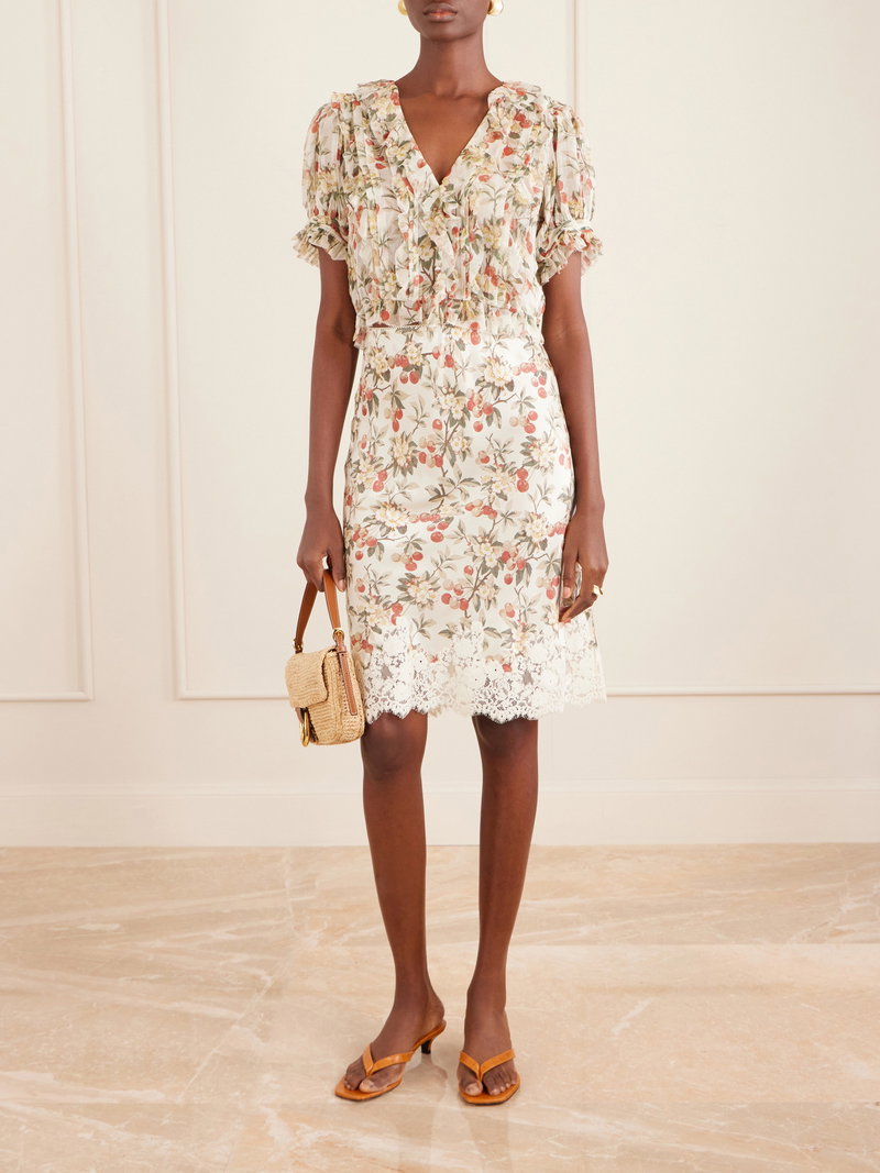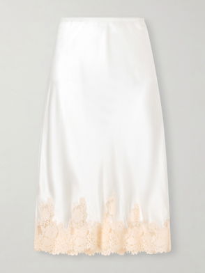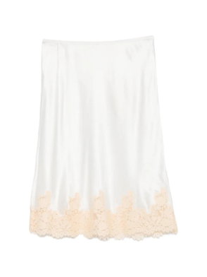DÔEN’s 'Elowette' silk-satin skirt falls from a high-rise waist to a softly flowing silhouette, finished with delicate floral embroidery along the hem. The light, airy shape moves beautifully as you walk. Style it with a tucked-in blouse or simple knit.