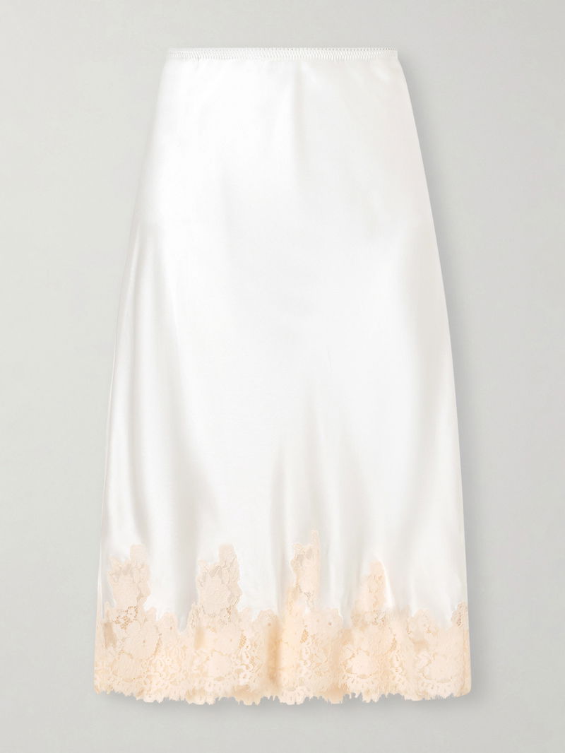 DÔEN's 'Elowette' skirt evokes romantic antique styles. Made from silk, it's trimmed with lace that falls prettily from the hem. Style yours with ballet flats.