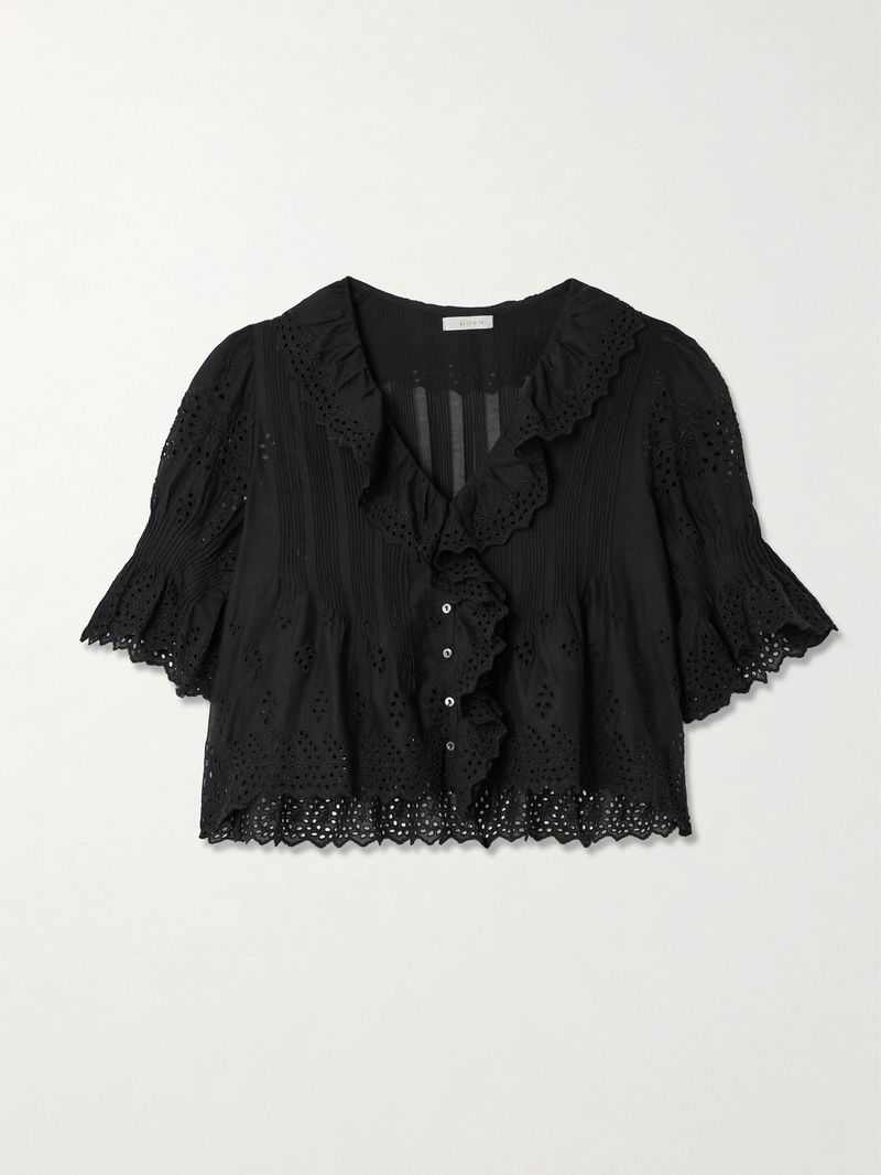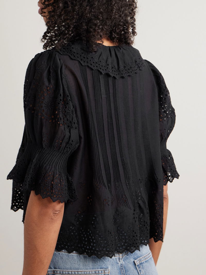 DÔEN's 'Henri' top is designed with carefully thought-out details that come together to create such a lovely result. Made from broderie anglaise cotton, it's meticulously pintucked and has cascading ruffles tracing the neckline. The shirred, puffed sleeves add volume.