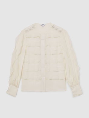 The romance of the Edwardian era inspires DÔEN’s ‘Henri’ blouse. Cut from delicate lace, it has pintucked puffed sleeves and fluttery ruffles tracing the neckline. Underpin yours with a tonal bralette to temper the sheerness.