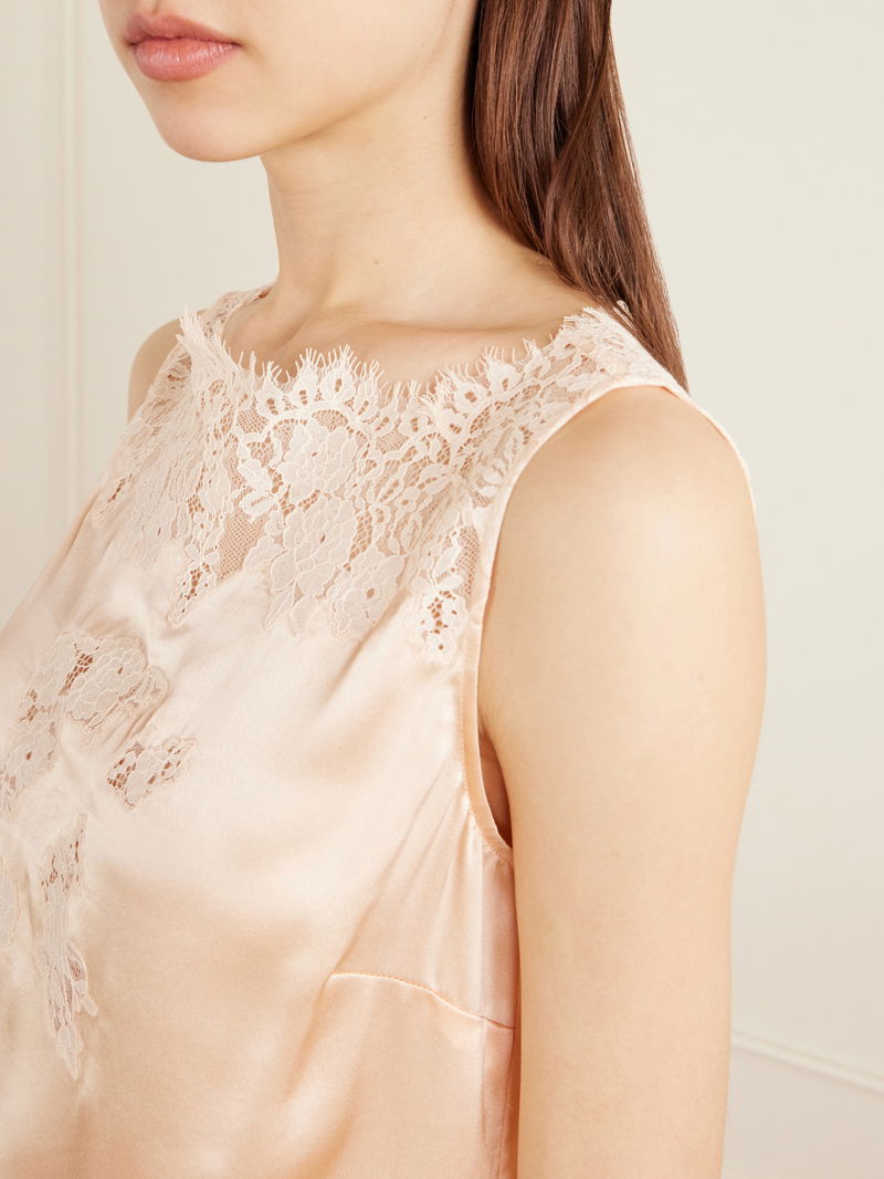 Cut from silk-satin in a soft shade aptly named 'Peach Sorbet,' it has a subtle sheen and a fluid fit that feels as romantic as it looks.