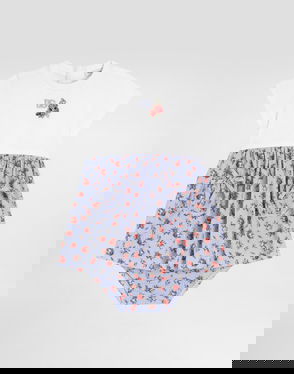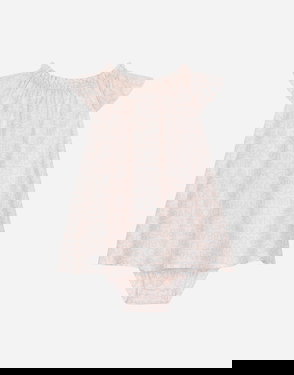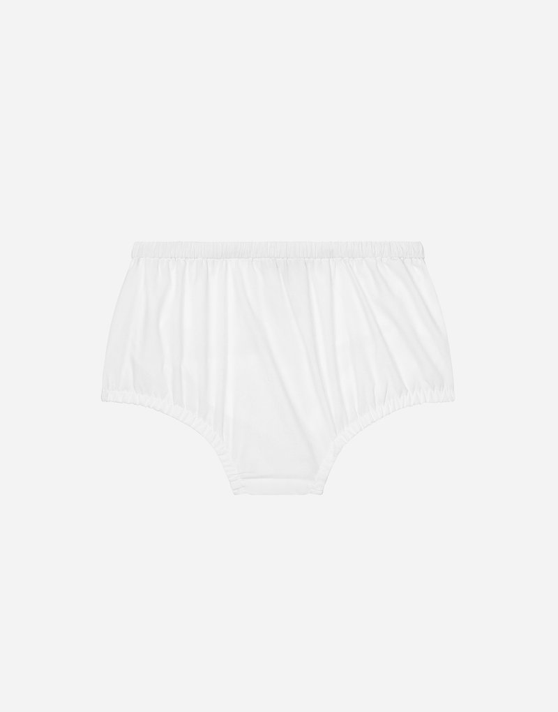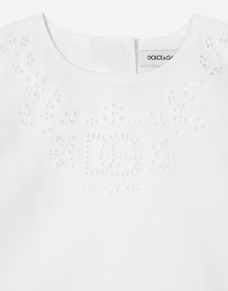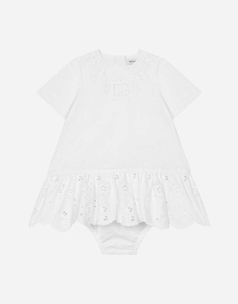 Cotton poplin dress with embroidered broderie anglaise DG logo: White Regular fit Round neck Short sleeves Ruffled broderie anglaise hem Concealed zipper fastening on the back Matching bloomers The item in the size 6/9 months measures 39.5 cm from the shoulder seam Made in Italy