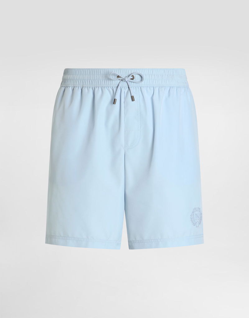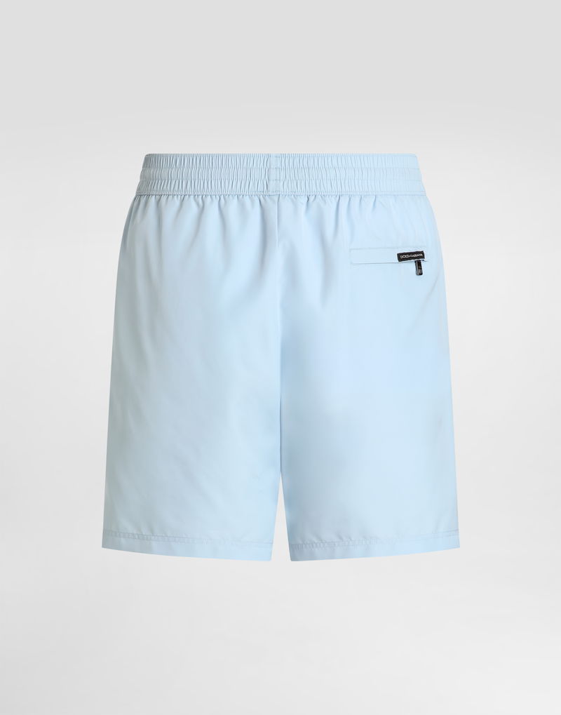 Medium swim boxer shorts: Light blue Velcro for pocket flap closure Inner briefs Equipped with a coordinated pouch with zip closure Made in Italy