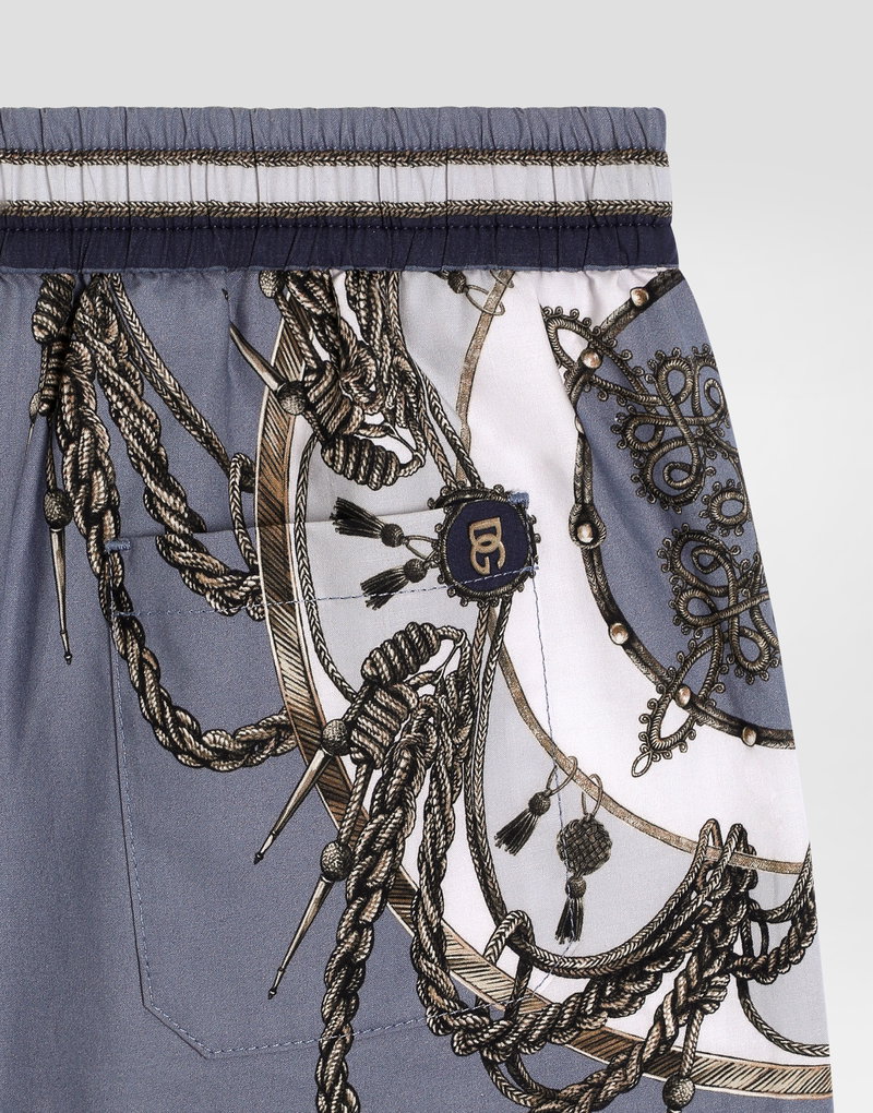 Cargo-print poplin bermuda shorts: Multi-colored Elasticated waistband and drawstring French pockets on the front Back patch pocket on the right side Made in Italy The difference in the print placement that you may find on this product is a feature of Dolce & Gabbana’s “Handmade” pieces. A detail that makes every garment or accessory unique and exclusive.
