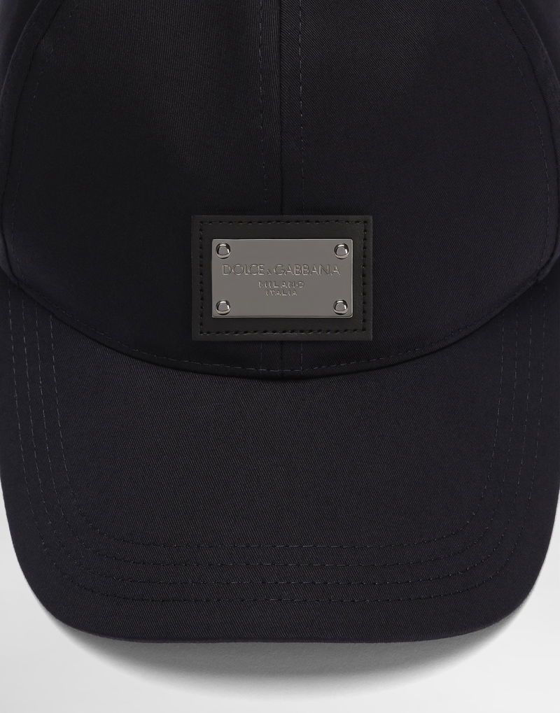 Stretch cotton baseball cap with rubberized metal Dolce & Gabbana logo tag: Adjustable rear strap with branded metal buckle Lined Sizes available: 57/58/59/60 Made in Italy