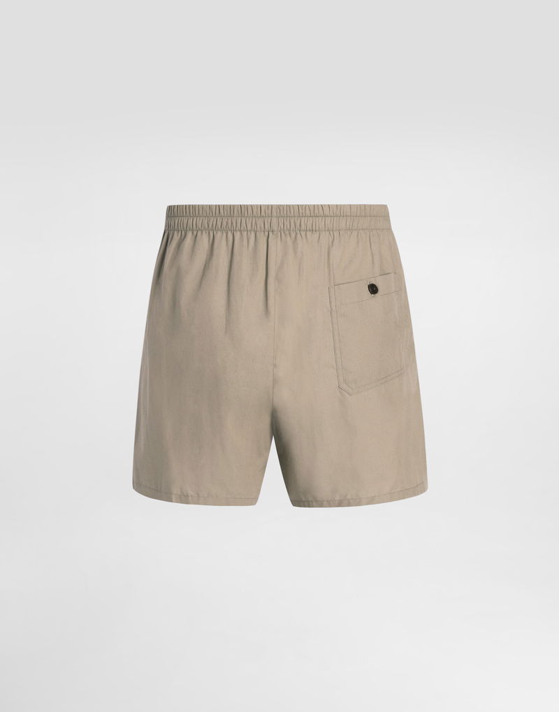 Cotton poplin boxer shorts: Beige Rounded flap with 2 buttons aligned at the front waist Slit at the hips Front mock opening Back patch pocket with button fastening Made in Italy