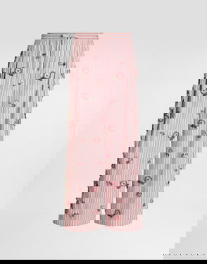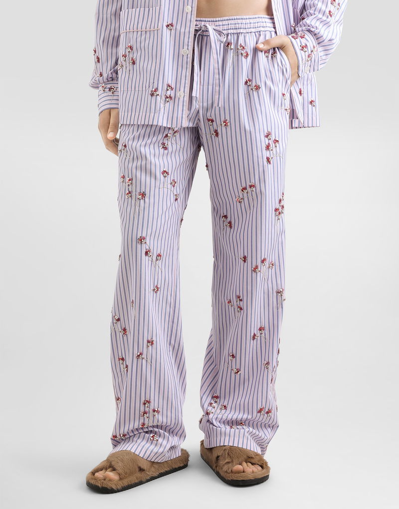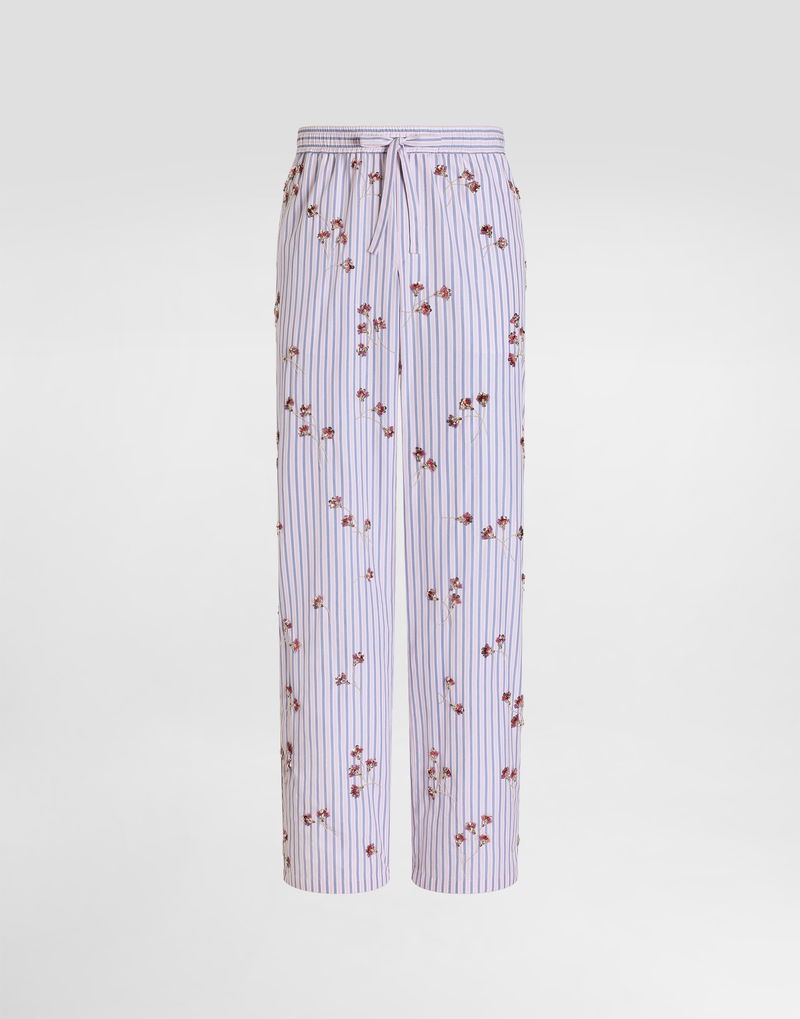 Cotton-silk Vanity trousers with embroidery: Multi-colored. Elastic waistband and drawstring. Faux lacing. French pockets. Back pocket with trim. Piping on sides and pocket.