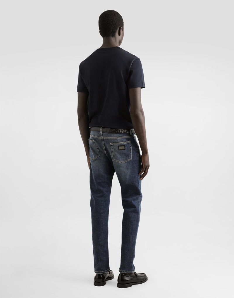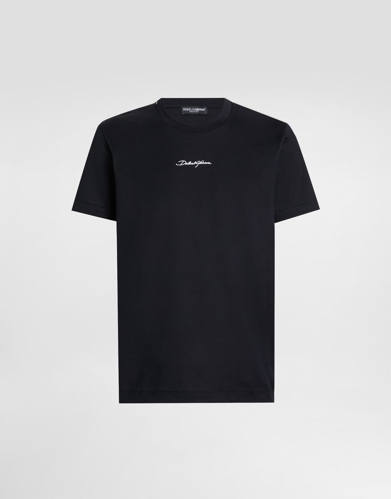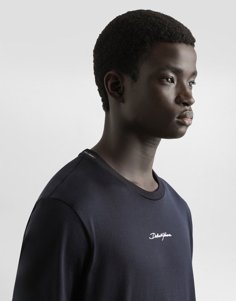 Cotton jersey T-shirt with Dolce & Gabbana embroidered patch: Blue Classic fit Knit neck, sleeves and hem Short sleeves The piece measures 71.5 cm from the shoulder seam on a size IT 48 Made in Italy