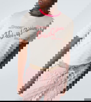 Cotton t-shirt with print: Beige Short sleeves Raw-cut hem and sleeves The model is 185 cm tall and wears a size 48 IT Made in Italy