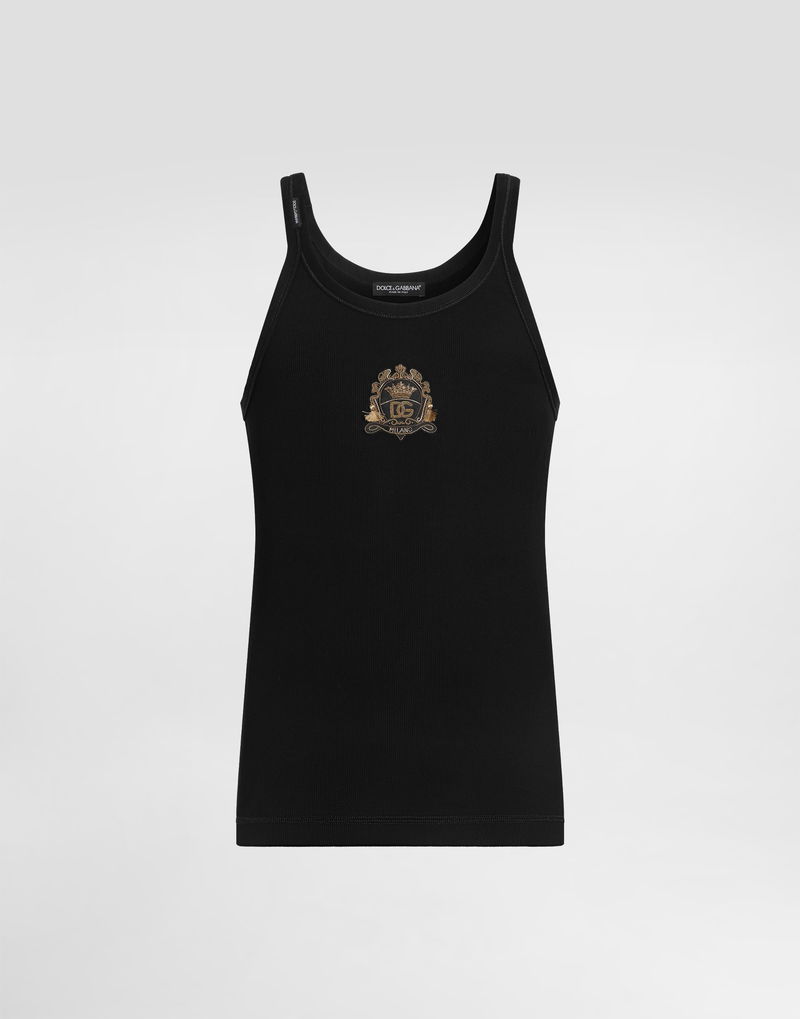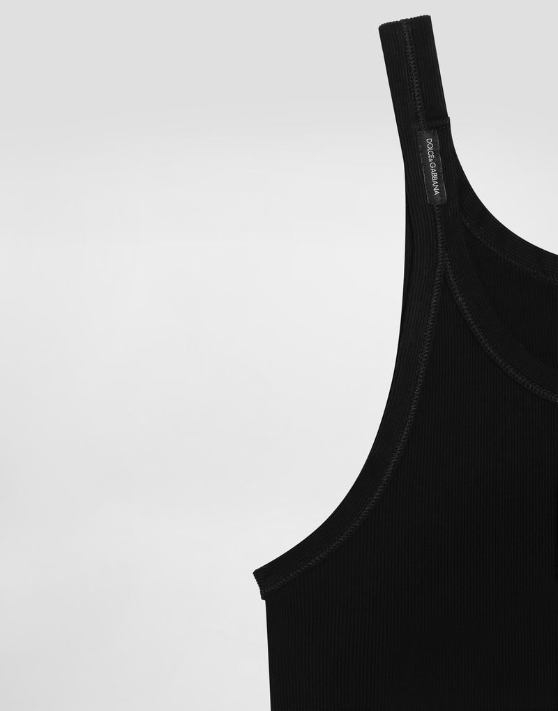 Cotton tank top: Black Slim fit Neckline and armholes trimmed.