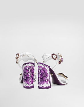 Cowhide sandals with embellishments: Multi-colored Keira shape Leather outsole with DG metal logo Texon insole Leather open toe insole customized with fire stamp with foil or film Customized with buckles Antique Latin gold plating Heel height 60 mm Item equipped with black cotton bag and black embossed box.