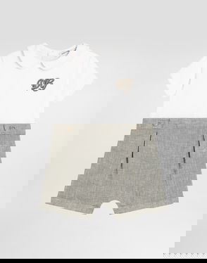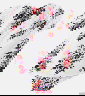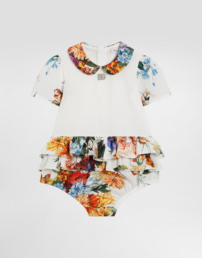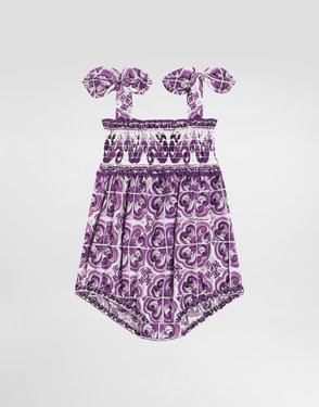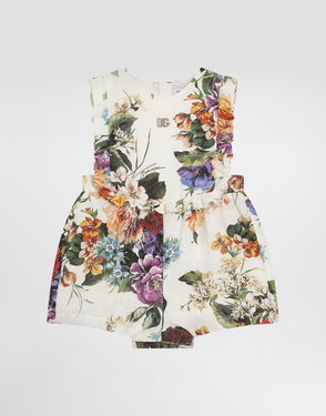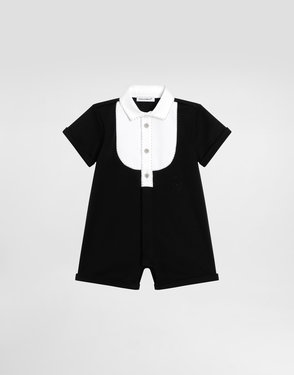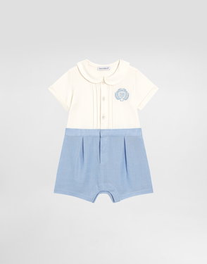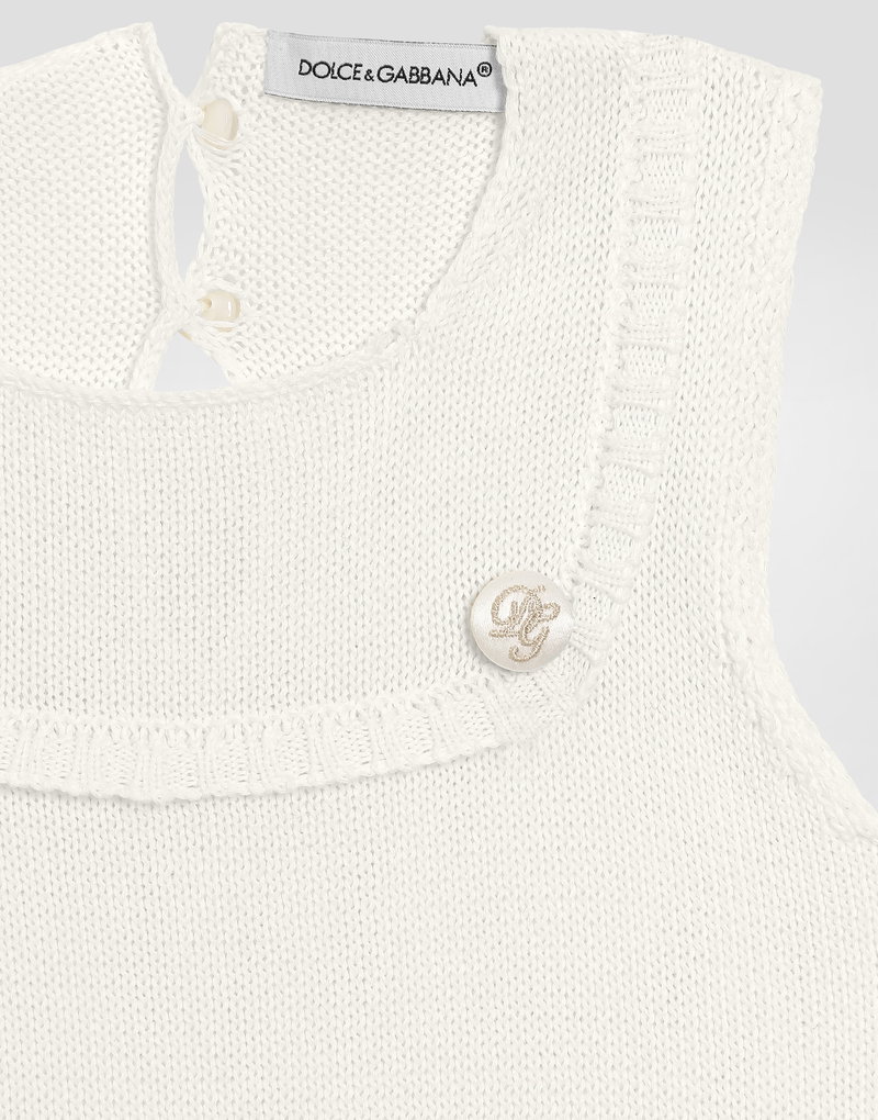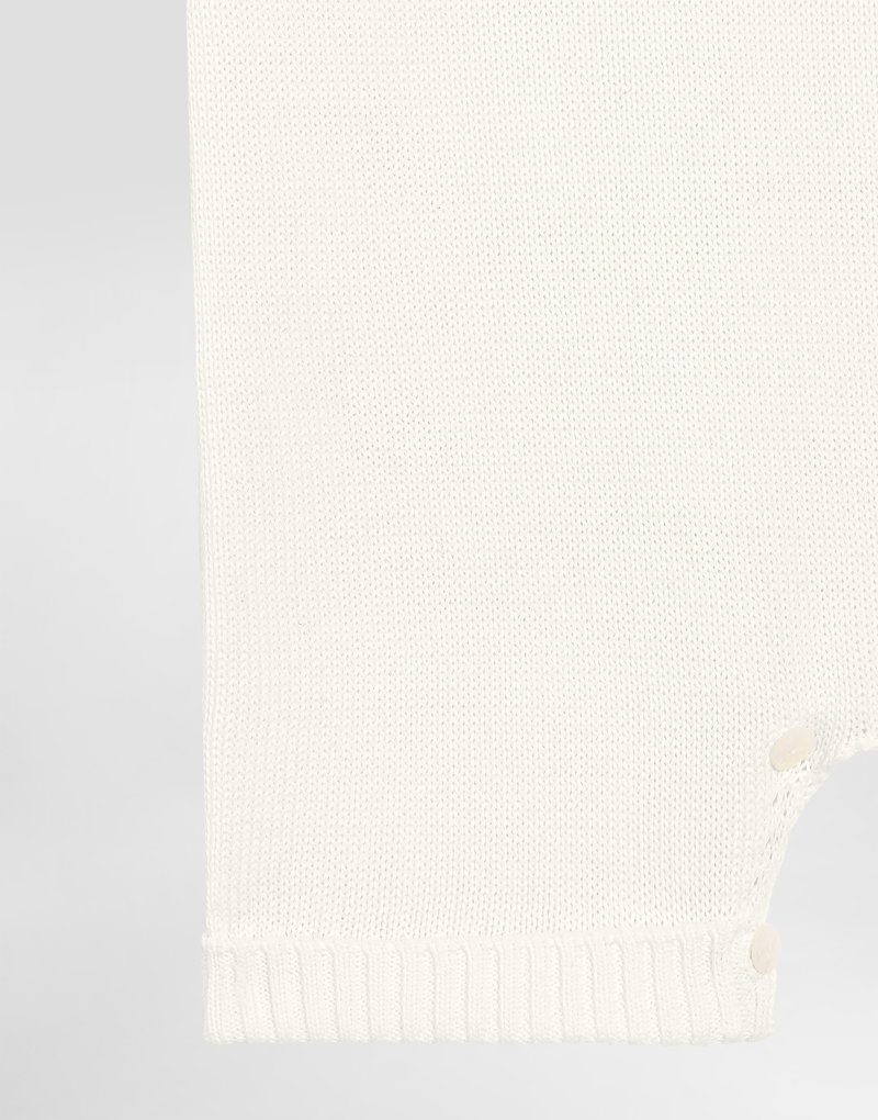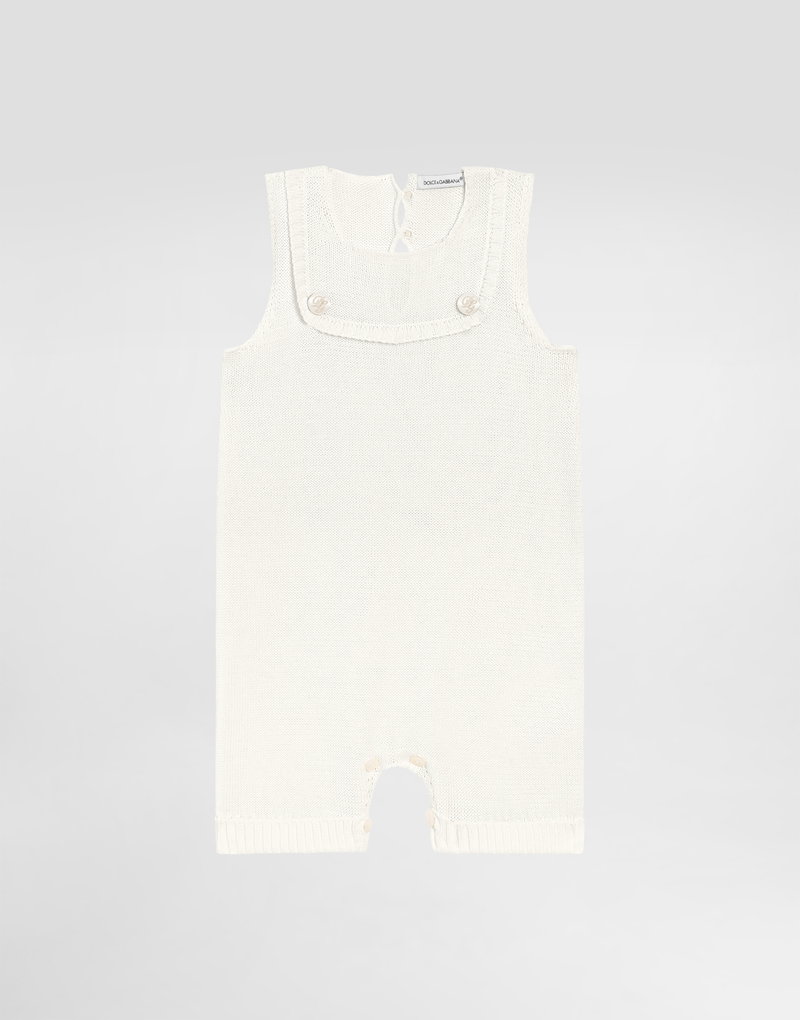 Cotton knit romper suit with diamond stitch detailing: White Regular fit Round neckline Sleeveless Ruched front yoke Fabric-covered decorative button fastenings with embroidered lurex DG logo Rib-knit ankle cuffs 7-gauge knit Branded button fastenings on the back and crotch The item in the size 6/9 months measures 41 cm from the shoulder seam Made in Italy