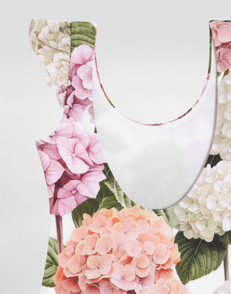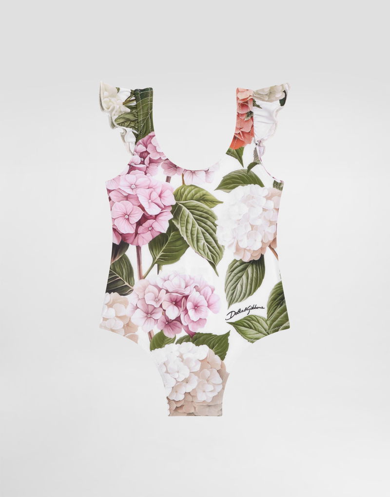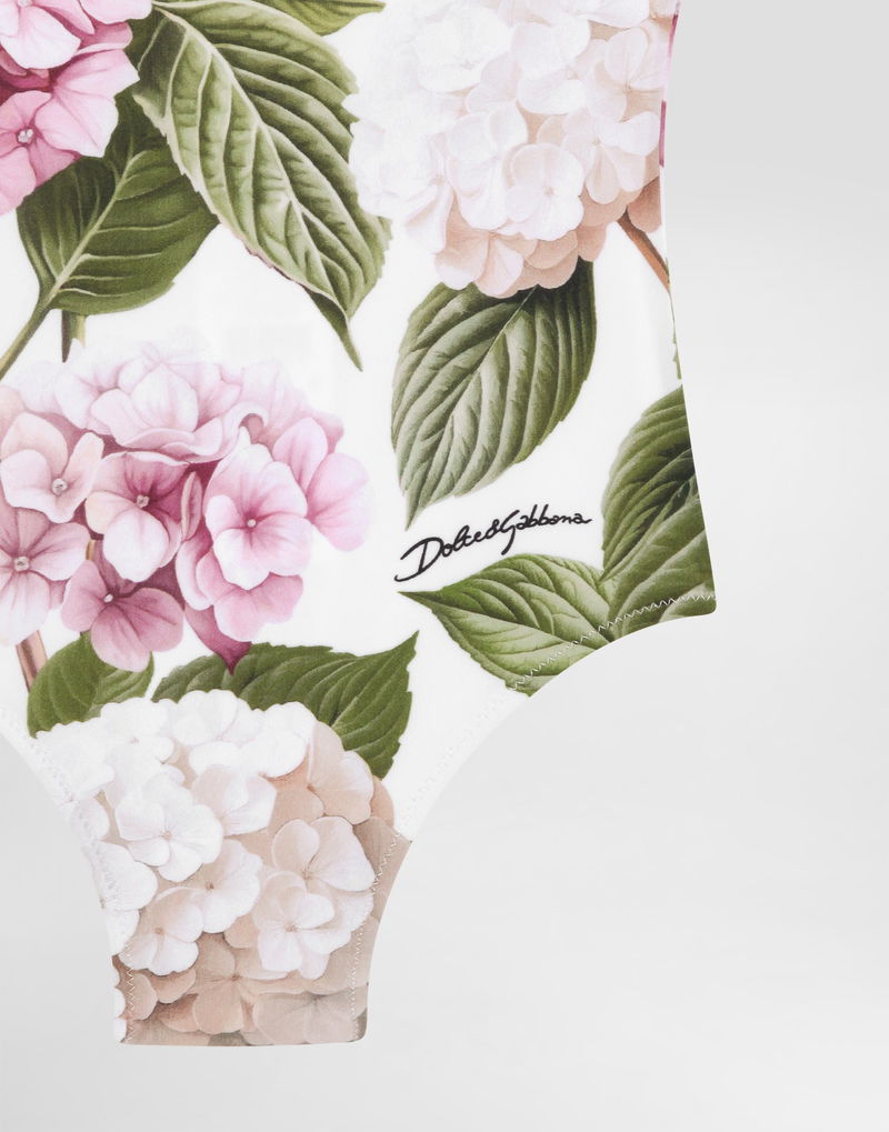 Hydrangea-print one-piece swimsuit: Multi-colored Made in Italy The difference in the print placement that you may find on this product is a feature of Dolce & Gabbana’s “Handmade” pieces. A detail that makes every garment or accessory unique and exclusive.