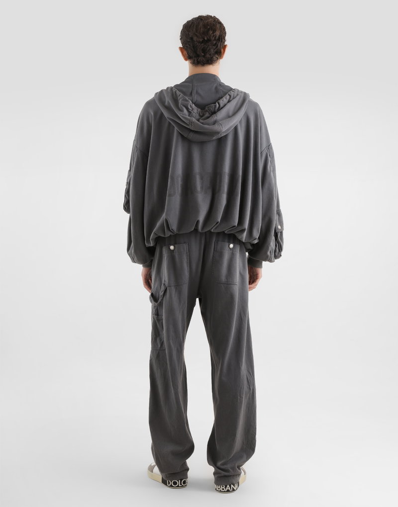 Jersey hooded sweatshirt with vintage finish: Multi-coloured Oversized fit Large hood with drawstring Military flap pockets Pockets on sleeves Jersey lining for body and sleeves. Sleeves with knitted cuff underarm. Plate on upper flap front left. Visible zip closure.