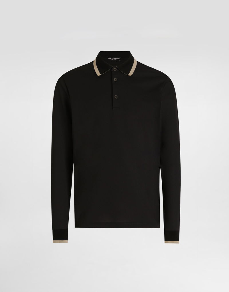 Jersey polo shirt: Black Classic fit Polo-shirt collar Long sleeves The model is 185 cm tall and wears a size 48 IT Made in Italy