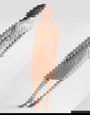 Lamb fur long coat: Pink Crew neck Single-breasted tie with poussoir Long sleeves With perforated workmanship Knotted belt with belt loops The model is 175 cm tall and wears size 40 IT Made in Italy