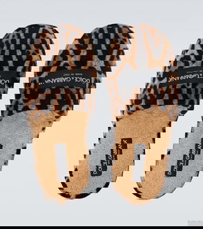 Leo-print Terry slippers: Multi-colored TPU outsole Micro insole Full terry insole customized with label Customization with logoed label Item equipped with a black cotton bag and black embossed box Sole height 10 mm Made in Italy The difference in the print placement that you may find on this product is a feature of Dolce & Gabbana’s “Handmade” pieces. A detail that makes every garment or accessory unique and exclusive.