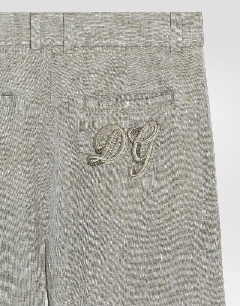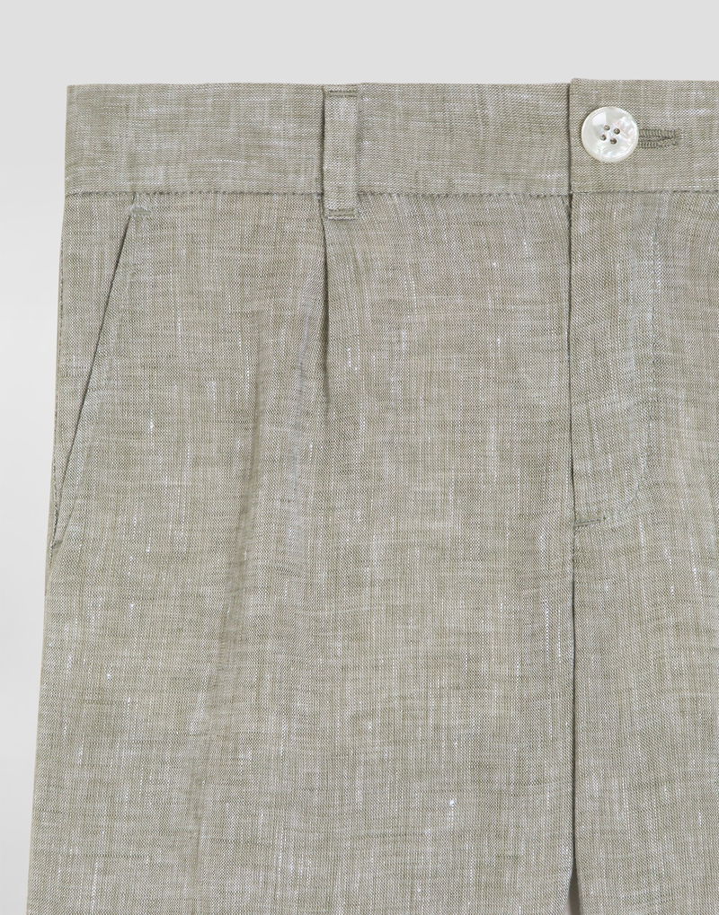 Linen bermuda shorts: Multi-colored With front pleat French pockets on the front and single-welt pockets on the back Front zip flap opening Belt with belt loops and side slits Inseam length 20.8 cm on size 6 years Leg opening 22.4 cm on size 6 years Made in Italy