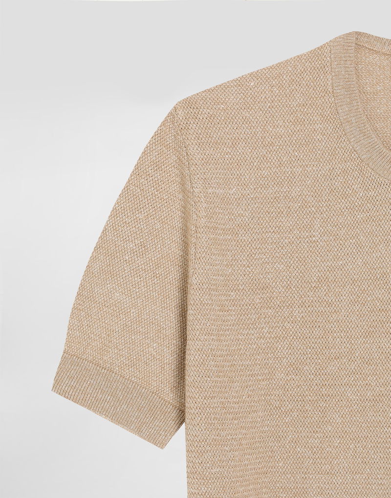 Made with at least 50% linen. Linen is made from the fibres of the flax plant. Flax is resilient and can grow in poor soil, using less water than cotton to produce.'