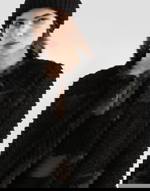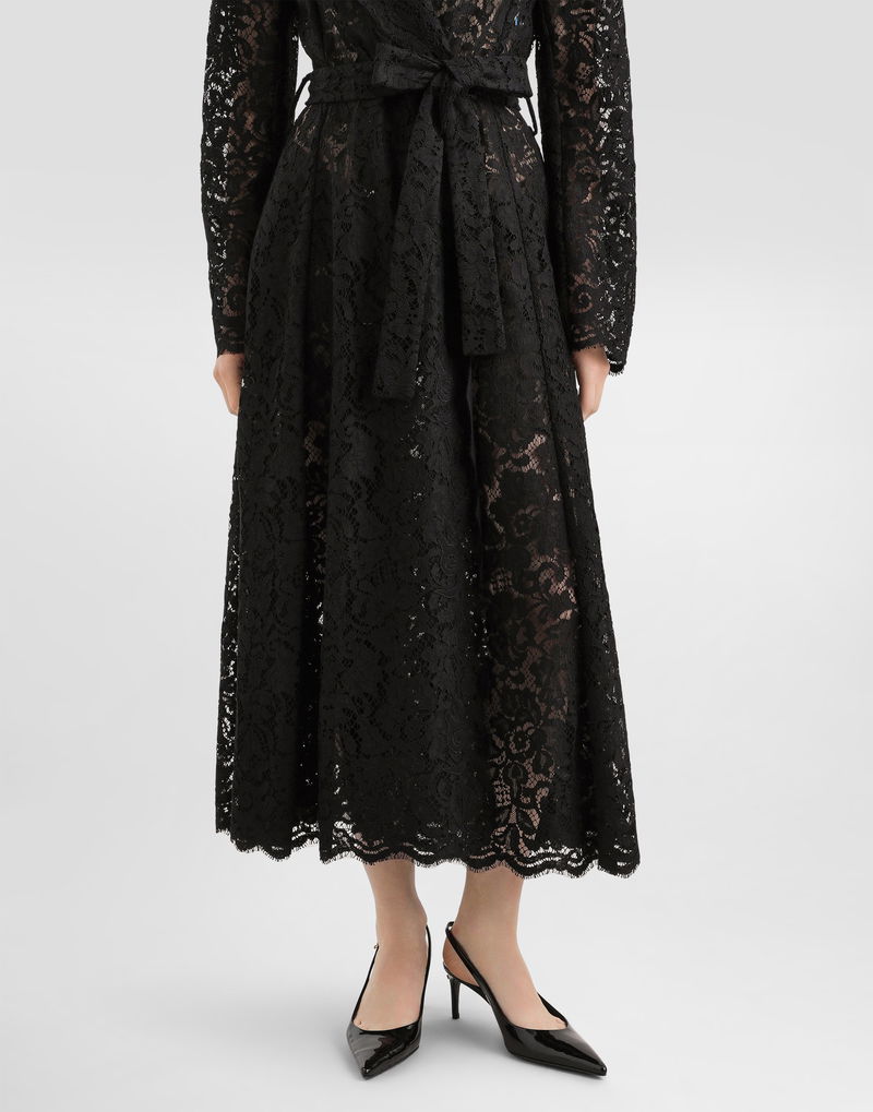 Long double-breasted cordonetto lace coat: Black Lapel collar. Side panels on front and back. Tulle pockets. Long sleeves. Canvassed with tulle.
