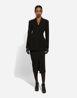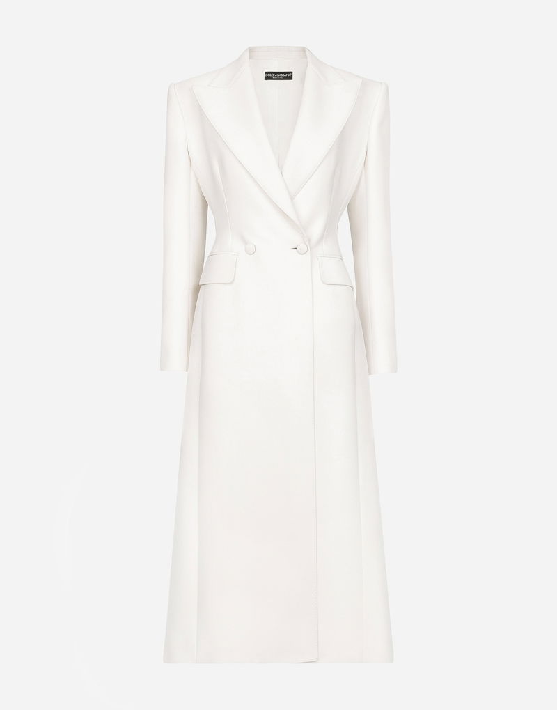 Long double-breasted wool cady coat: White Peak lapels Long sleeves Shoulder pads Slim fit Flap pockets Stretch silk satin lining Button fastenings The piece measures 125 cm from the center back on a size IT 40 The model is 175 cm tall and wears a size IT 40 Made in Italy