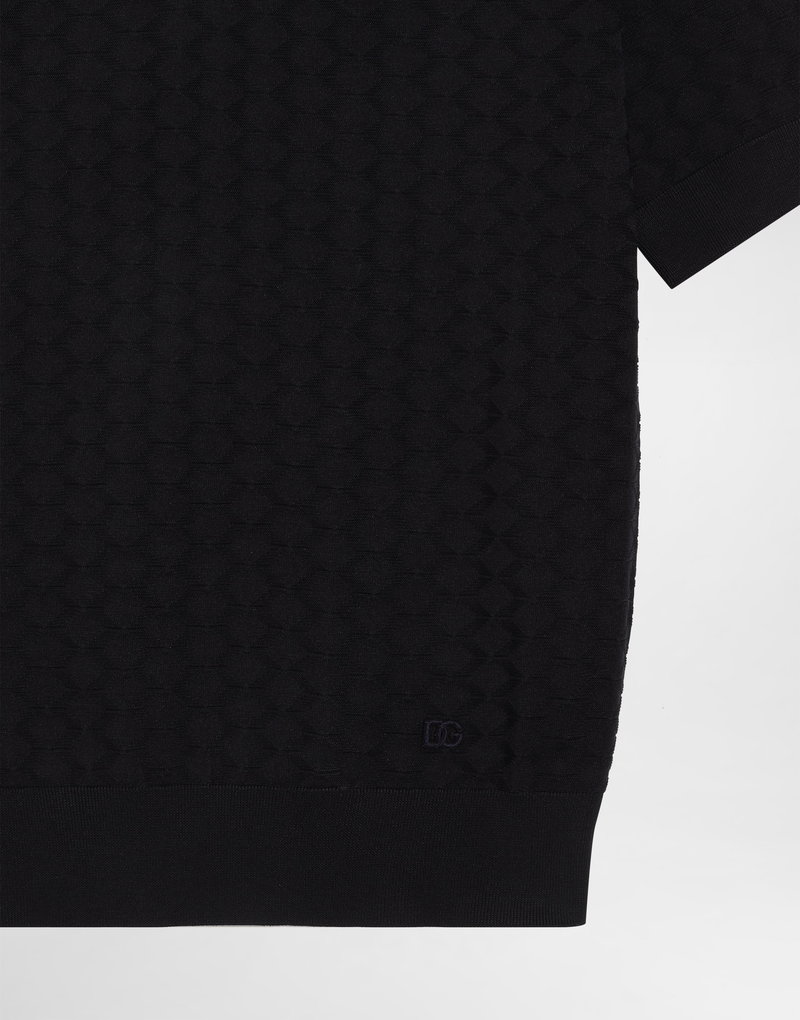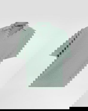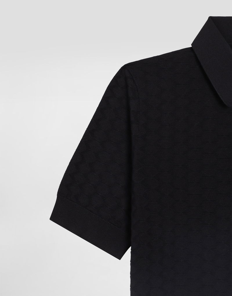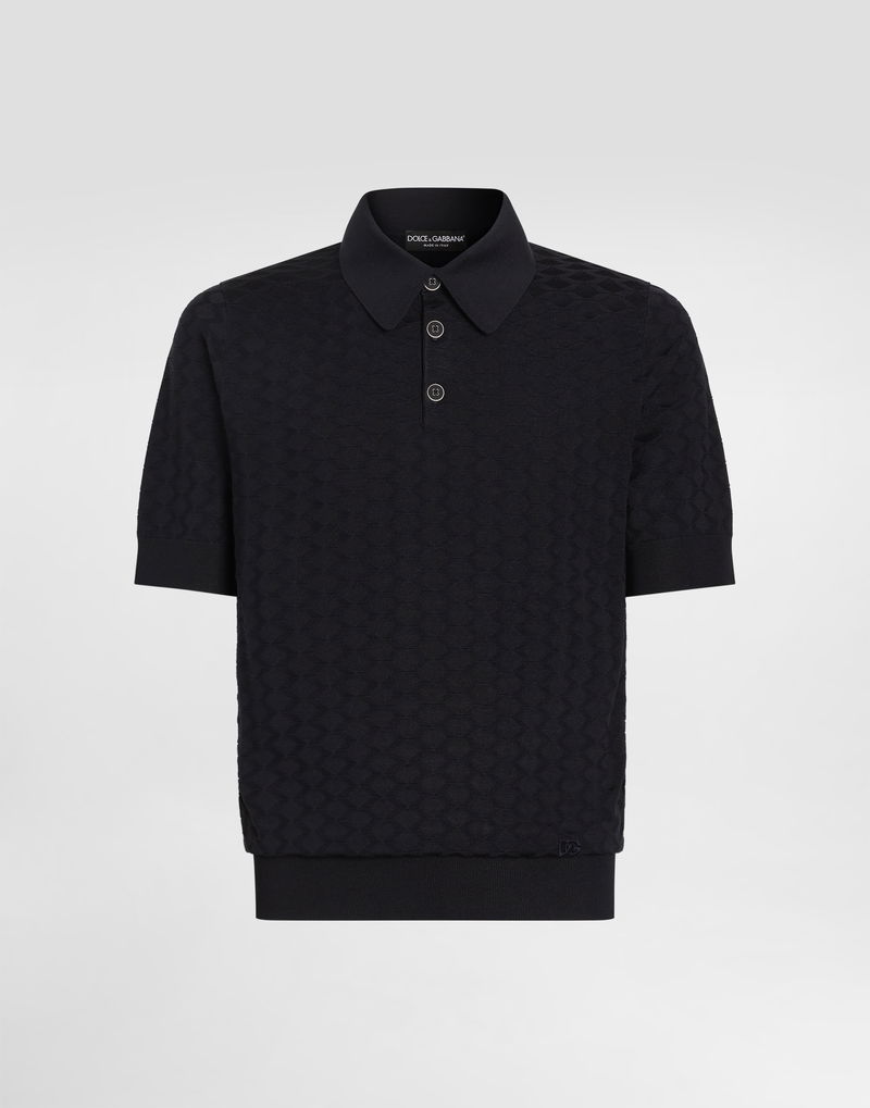 Micro-dot stitch silk polo shirt: Blue Polo-shirt collar Short sleeves The model is 185 cm tall and wears a size 48 IT Made in Italy