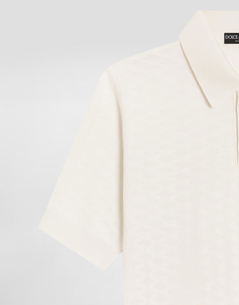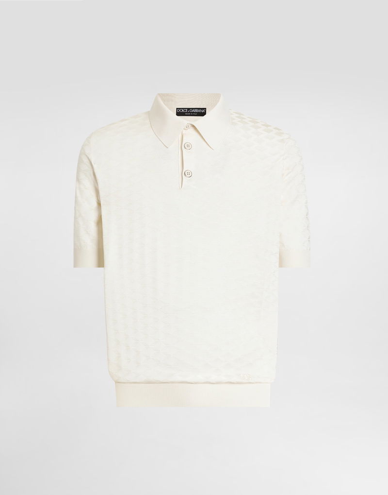 Micro-dot stitch silk polo shirt: White Polo-shirt collar Short sleeves The model is 185 cm tall and wears a size 48 IT Made in Italy