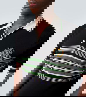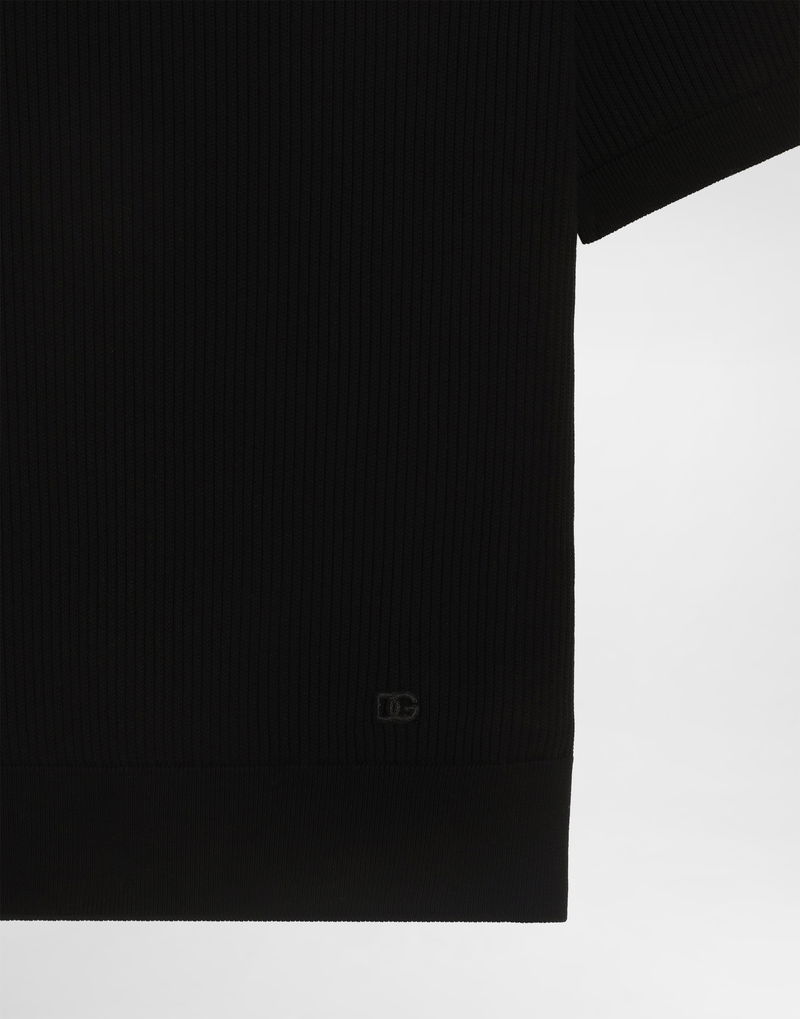Micro-rib cotton polo shirt: Black Short sleeves The model is 185 cm tall and wears a size 48 IT Made in Italy