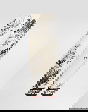 Peony-print Vanity twill trousers: Multi-colored Piping along sides and pockets Waistband with elastic and drawstring Faux lacing with topstitching French pockets.