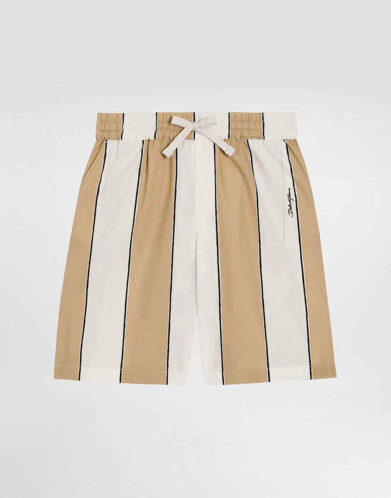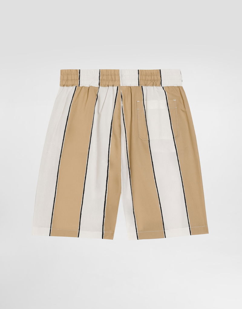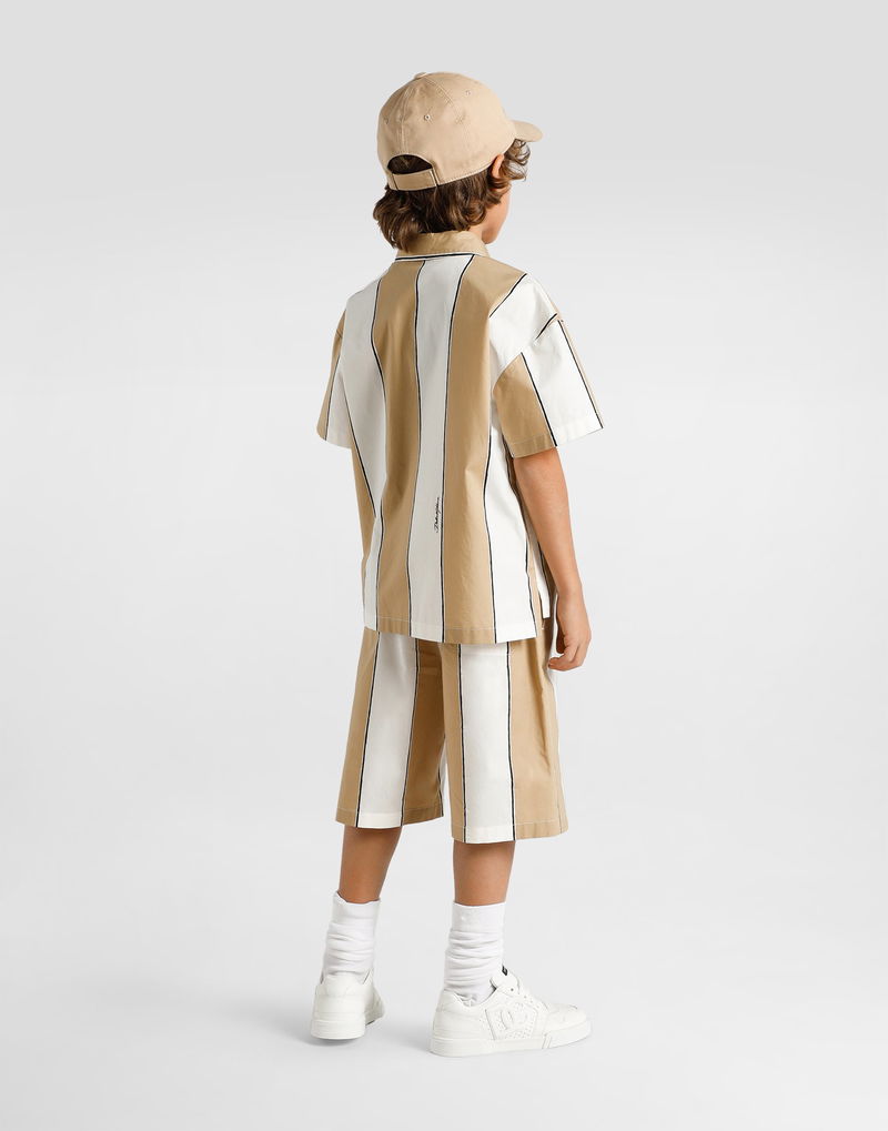 Poplin bermuda shorts with striped print: Multi-colored Oversized fit Front French pockets Back patch pocket Knee-length Inseam length 18.5 cm on size 6 years Hem width 25 cm on size 6 years Made in Italy
