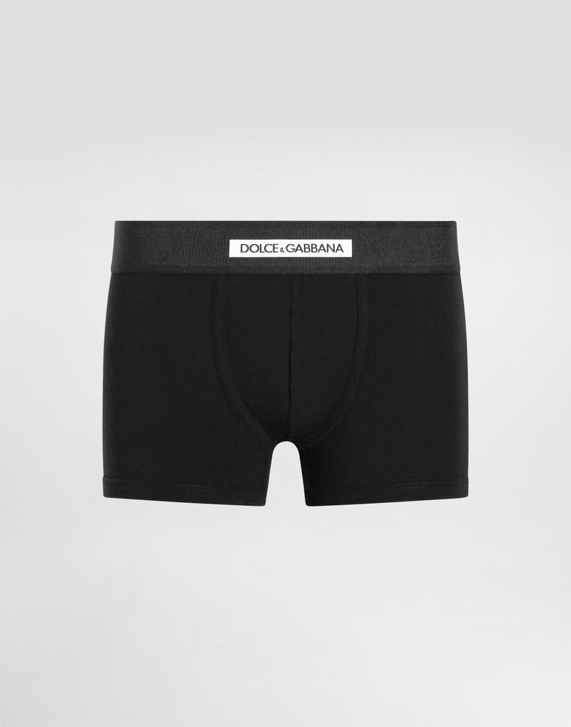 Practical and comfortable men’s underwear in two-way stretch cotton jersey: Black Boxers, regular fit Soft elasticated waistband with contrasting Dolce & Gabbana logo Loose fit.