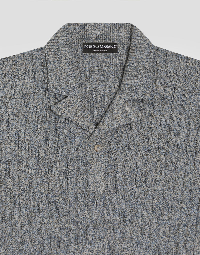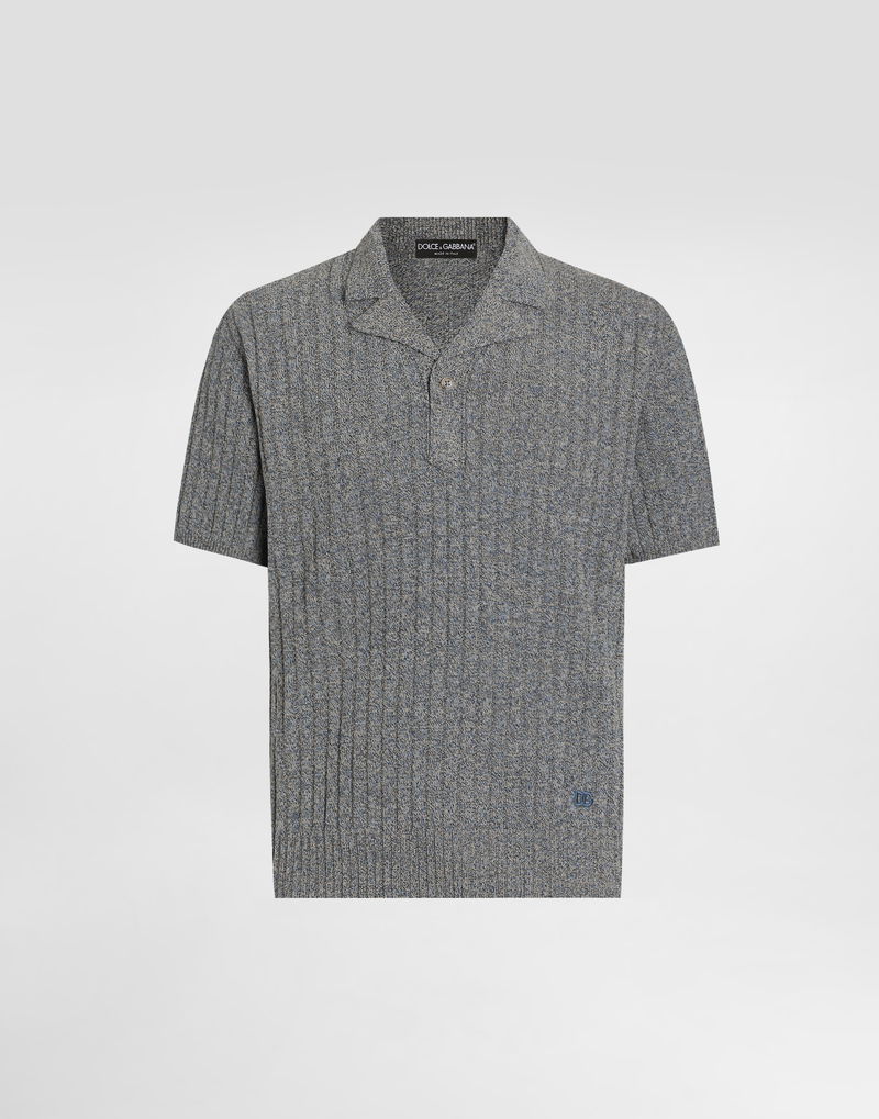 Ribbed cotton and linen polo shirt: Grey Polo-shirt collar Short sleeves The model is 185 cm tall and wears a size 48 IT Made in Italy
