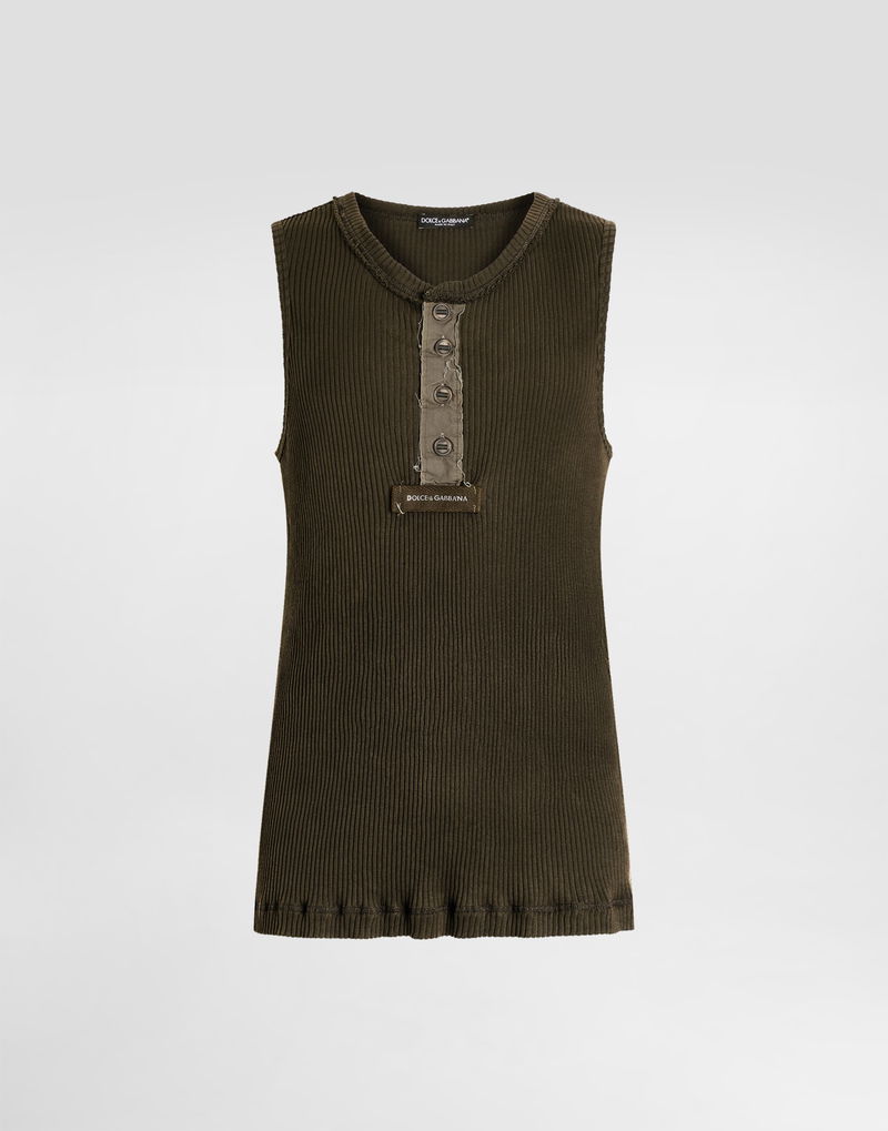 Ribbed cotton tank top: Grey Crew neck The model is 185 cm tall and wears a size 48 IT Made in Italy