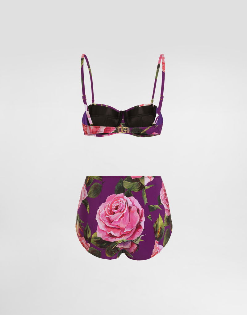 Rose-print Balconette Bikini Top And High-waisted Bottoms