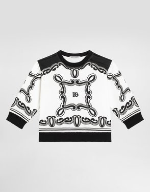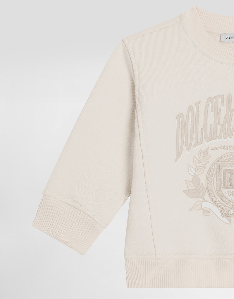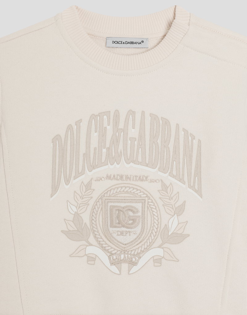Cotton round-neck sweatshirt with Dolce & Gabbana print and embroidered details: Beige Oversize fit Ribbed round neck Long sleeves with ribbed cuffs Rib-knit hem Concealed press-stud fastenings on the shoulder The item in the size 6/9 months measures 31 cm from the shoulder seam Made in Italy