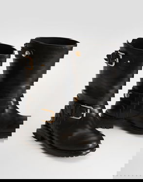 Rubber and calfskin ankle boots: Black Bernini shape TPU outsole Leather insole Latex fussbett insole wrapped in leather customized with label Customization with DG crossed logo Ruthenium plating Item equipped with black Cotton bag and black embossed box Made in Italy