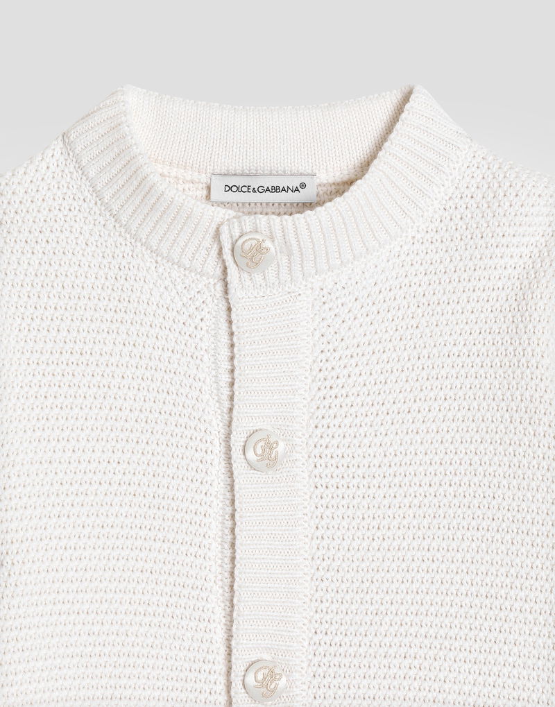 Seed stitch cotton and cashmere knit cardigan: White Made in Italy
