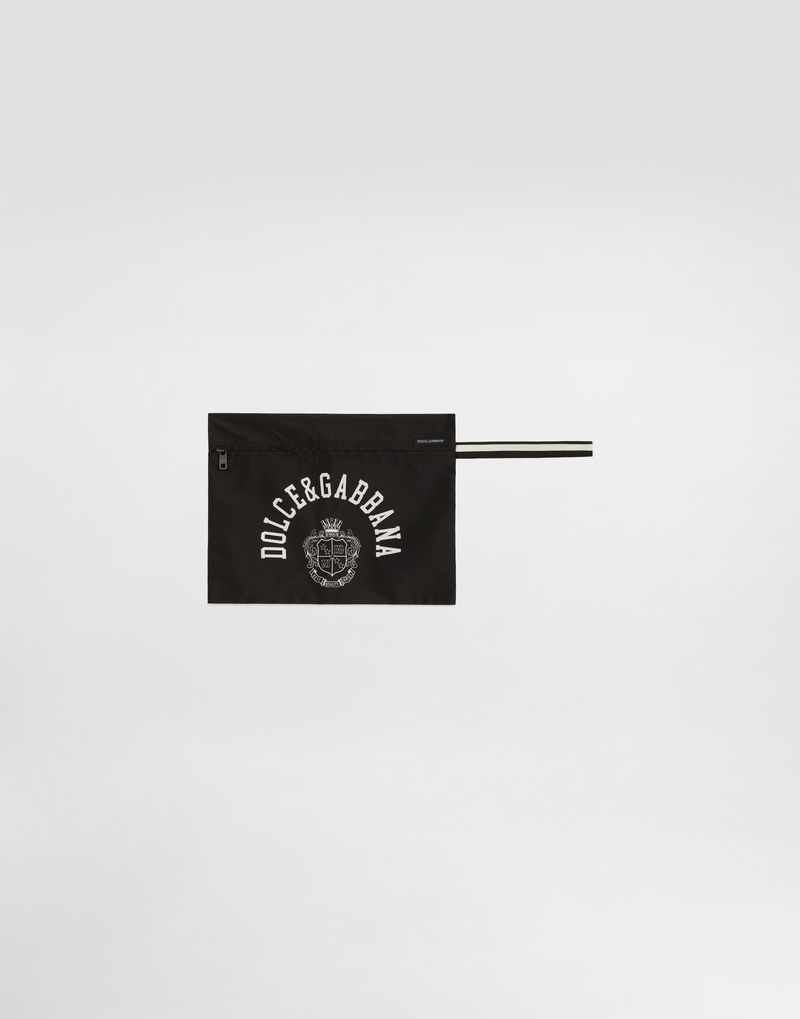 Short swim boxers: Multi-colored Side pockets and welt pocket on the back with logoed zip Fake front opening Inner briefs Matching clutch bag with handle and zip opening Made in Italy