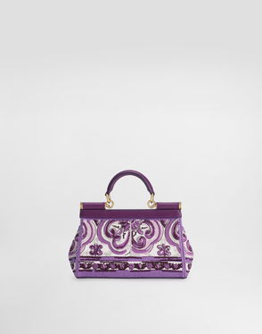 Sicily medium embroidered handbag: Multi-colored Leather handle, removable and adjustable leather shoulder strap Tuck-in closure Vintage brass plating External customization with bigalvanic plate Internal customization with stamp with film Interior with card pocket and flat pocket Item equipped with a logo bag and pre-assembled box Measurements: H18.5 x W20 x D10 cm Can hold keys, card holder and phone Made in Italy