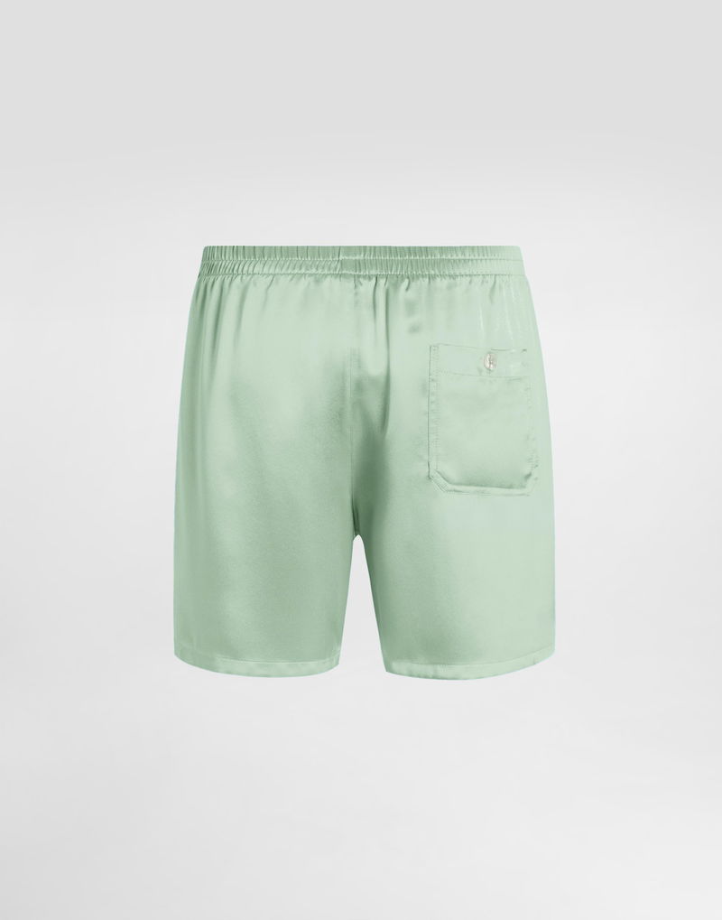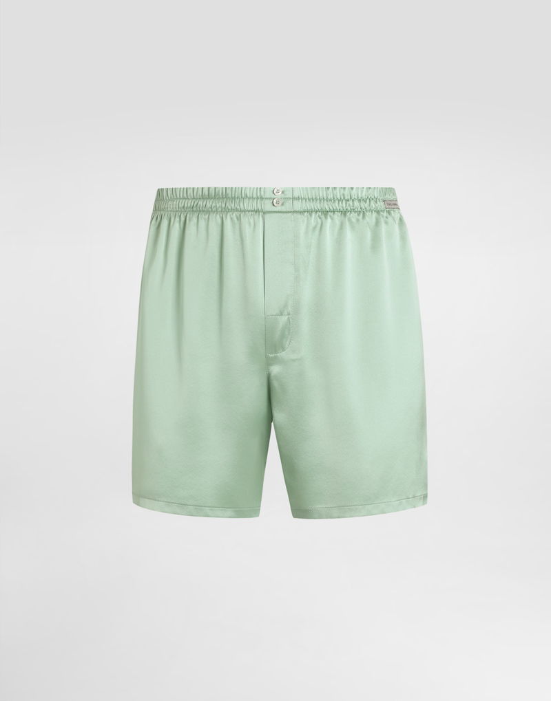 Silk satin boxer shorts: Green Rounded flap with 2 buttons aligned at the front waist Slit at the hips Front mock opening Back patch pocket with button fastening Made in Italy Given the product characteristics, unfortunately some items in the underwear category cannot be returned. For more information, please consult the Returns and Refunds section.