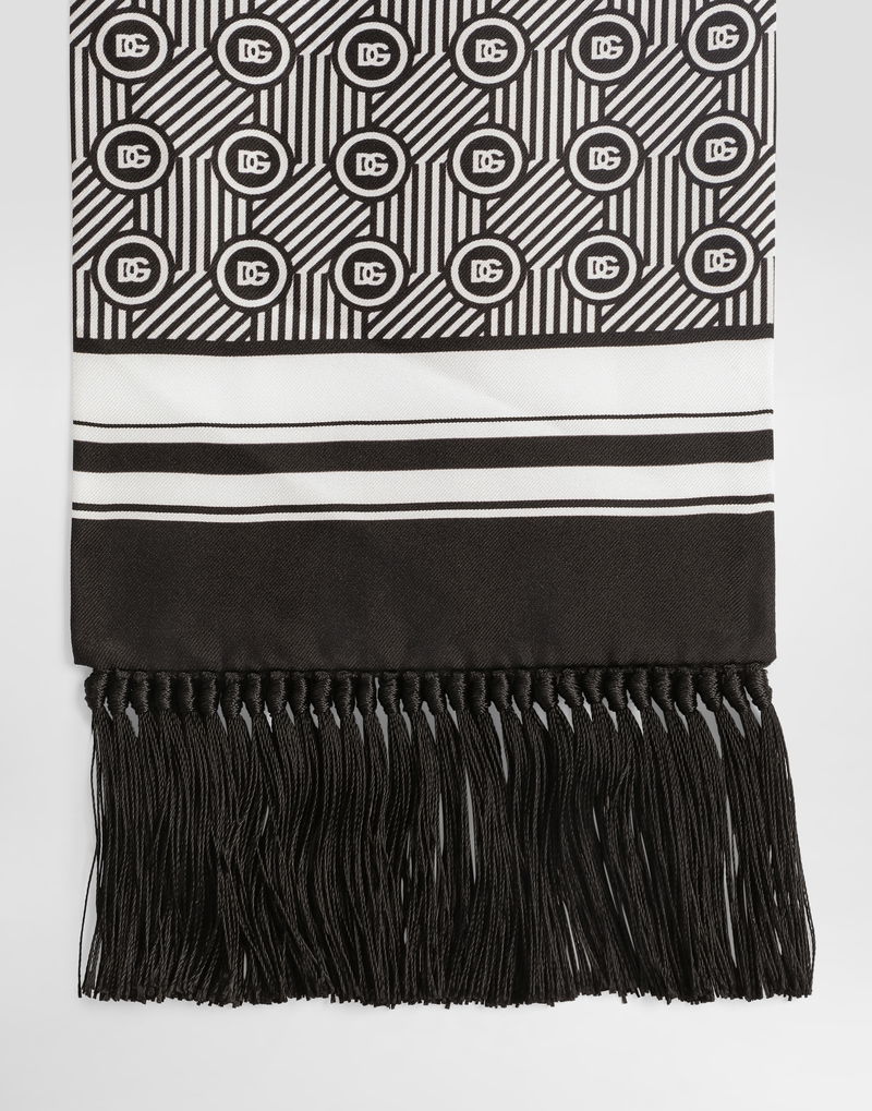 Silk Twill Scarf With Micro-design And Logo