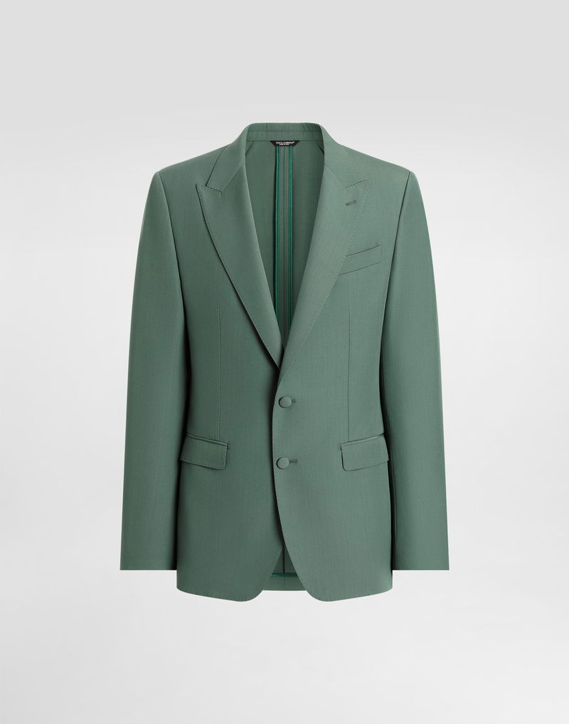 Single-breasted wool poplin jacket: Green Peak lapel.