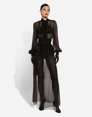 Small rose-print chiffon shirt with rose print: Multi-colored The model is 175 cm tall and wears size 40 IT Made in Italy The difference in the print placement that you may find on this product is a feature of Dolce & Gabbana’s “Handmade” pieces. A detail that makes every garment or accessory unique and exclusive.