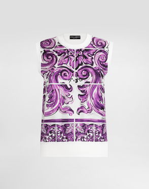 Small rose-print silk tank top: Multi-colored Sleeveless Length from shoulder 53 cm on size 40 IT The model is 175 cm tall and wears size 40 IT Made in Italy The difference in the print placement that you may find on this product is a feature of Dolce & Gabbana’s “Handmade” pieces. A detail that makes every garment or accessory unique and exclusive.